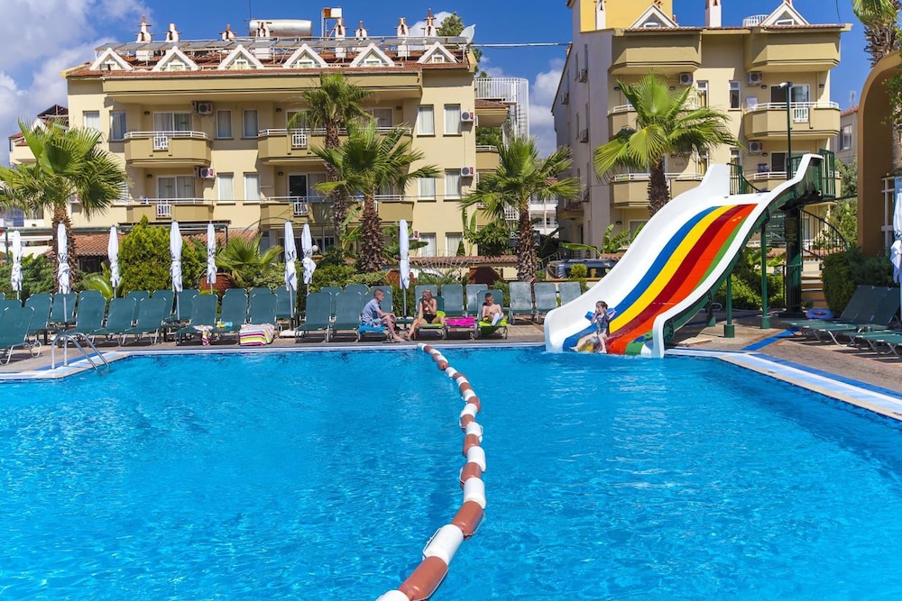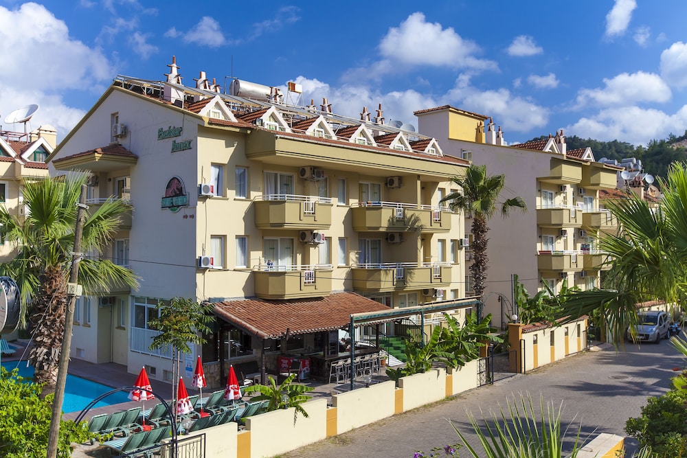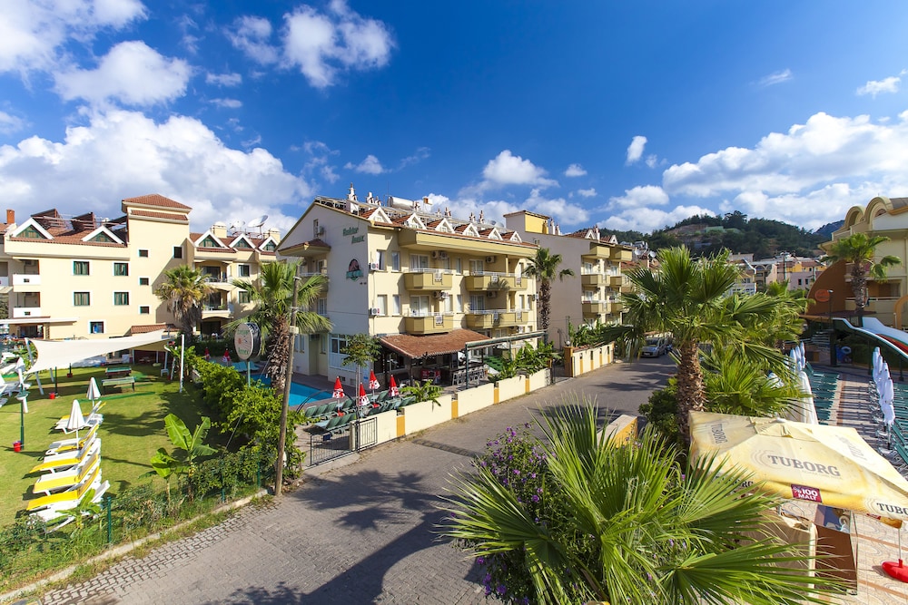 With a stay at Exelsior Annex in Marmaris (Marmaris City Center), you'll be within a 5-minute drive of Marmaris Beach and Mini Golf Marmaris. This family-friendly hotel is 0.2 mi (0.4 km) from Marmaris Amphitheater and 0.3 mi (0.5 km) from Marmaris National Park. Make yourself at home in one of the 45 air-conditioned rooms featuring kitchenettes with refrigerators and stovetops. Rooms have private balconies. 22-inch LED televisions with satellite programming provide entertainment, while wireless internet access (surcharge) keeps you connected. Conveniences include phones, as well as safes and desks. Distances are displayed to the nearest 0.1 mile and kilometer.
