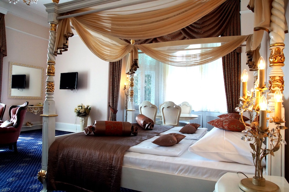 Located in Meinhard, Schloss Hotel Wolfsbrunnen is within a 10-minute drive of Eschwege Castle and Werratalsee Beach Park. This beach hotel is 3.8 mi (6.1 km) from Eschwege City Museum and 12.8 mi (20.6 km) from Graduation Tower. Stay in one of 53 guestrooms featuring flat-screen televisions. Complimentary wireless internet access keeps you connected, and satellite programming is available for your entertainment. Private bathrooms with bathtubs or showers feature complimentary toiletries and hair dryers. Conveniences include phones and complimentary bottled water, and housekeeping is provided daily. Distances are displayed to the nearest 0.1 mile and kilometer.