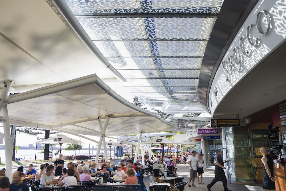 With a stay at Mantra Sirocco Resort in Sunshine Coast (Mooloolaba), you'll be within a 5-minute walk of Mooloolaba Beach and Mooloolaba Esplanade. This beach aparthotel is 0.1 mi (0.2 km) from Salt Caves Mooloolaba and 0.4 mi (0.7 km) from The Wharf Mooloolaba. Make yourself at home in one of the 41 guestrooms, featuring kitchens with refrigerators and stovetops. Rooms have private balconies. Flat-screen televisions with cable programming provide entertainment, while wireless internet access (surcharge) keeps you connected. Conveniences include safes and separate sitting areas, and housekeeping is provided weekly. Distances are displayed to the nearest 0.1 mile and kilometer.