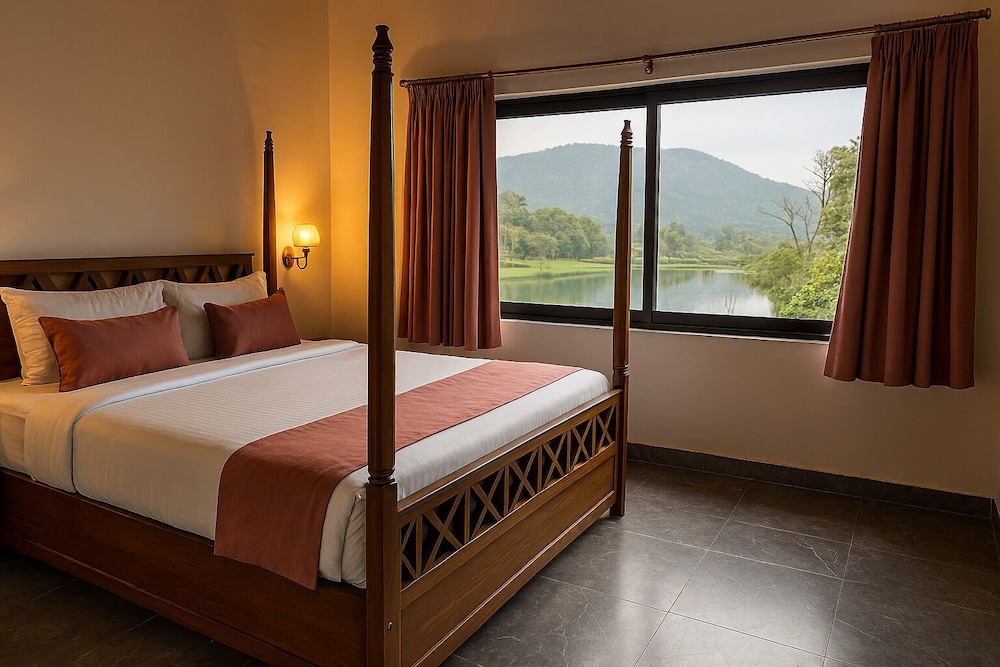 With a stay at Amritara Sonemale Resort Chikmagalur in Mudigere, you'll be on a lake, and 24.4 mi (39.3 km) from Central Coffee Research Institution and 25.6 mi (41.2 km) from Sri Chappara Anjaneya Temple. This resort is 26.9 mi (43.4 km) from Manjusha Museum and 27.3 mi (44 km) from Shri Kshetra Dharmasthala. Make yourself at home in one of the 17 air-conditioned rooms featuring minibars and LCD televisions. Your bed comes with premium bedding, and all rooms are furnished with single sofa beds. Complimentary wireless internet access keeps you connected, and digital programming is available for your entertainment. Private bathrooms with showers feature complimentary toiletries and hair dryers. Distances are displayed to the nearest 0.1 mile and kilometer.