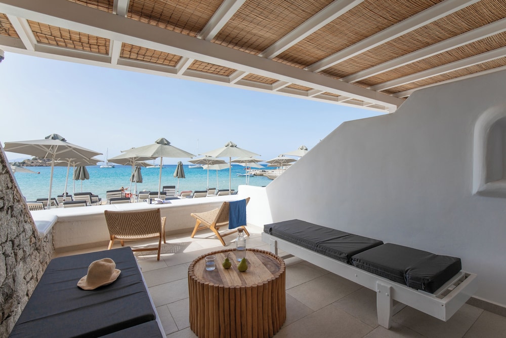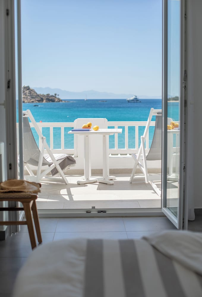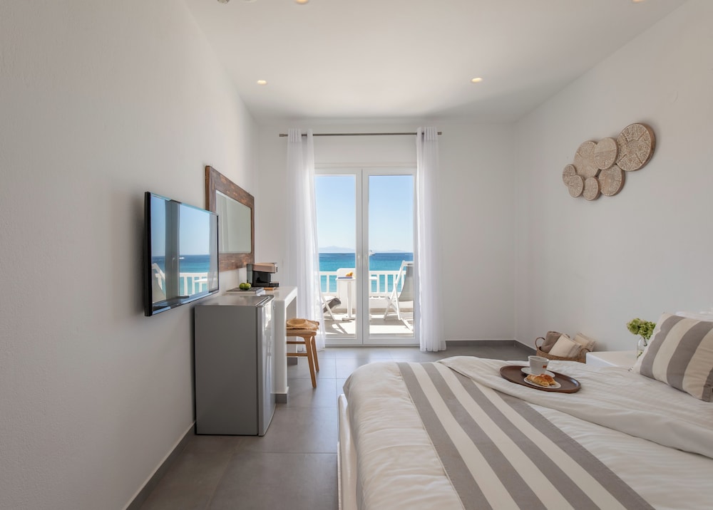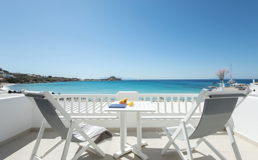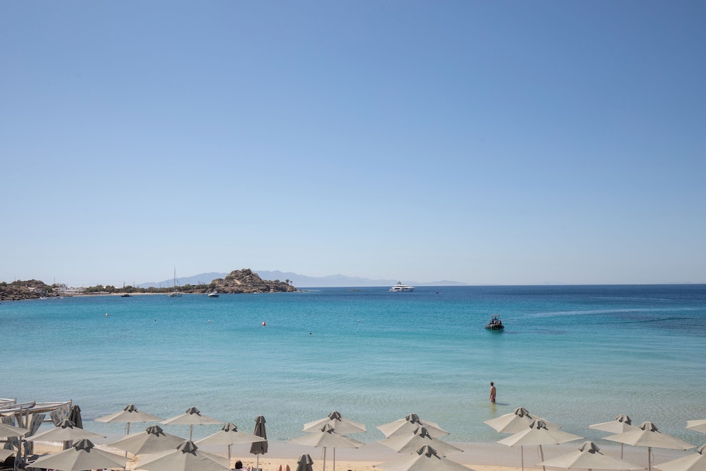 Located in Mykonos, Acrogiali Beachfront Hotel is by the sea, within a 10-minute drive of Psarou Beach and Windmills of Mykonos. This beach hotel is 0.9 mi (1.5 km) from Paranga Beach and 1.2 mi (1.9 km) from Paradise Beach. Make yourself at home in one of the 70 guestrooms featuring refrigerators and espresso makers. Rooms have private balconies or patios. 32-inch flat-screen televisions are provided, with satellite programming available. Private bathrooms with showers feature rainfall showerheads and complimentary toiletries. Distances are displayed to the nearest 0.1 mile and kilometer.