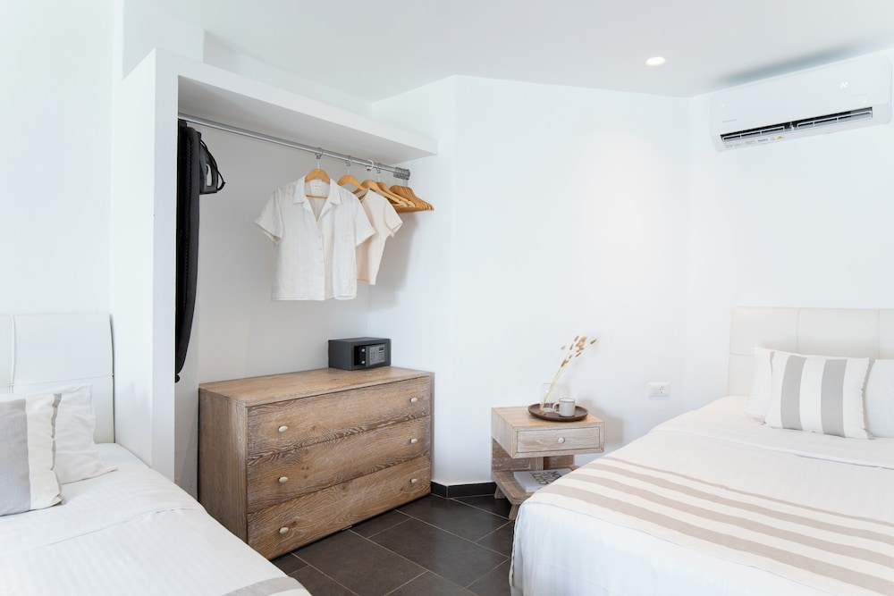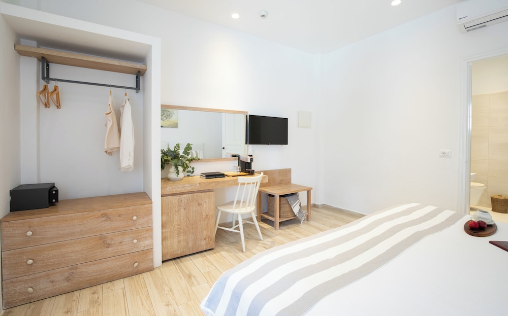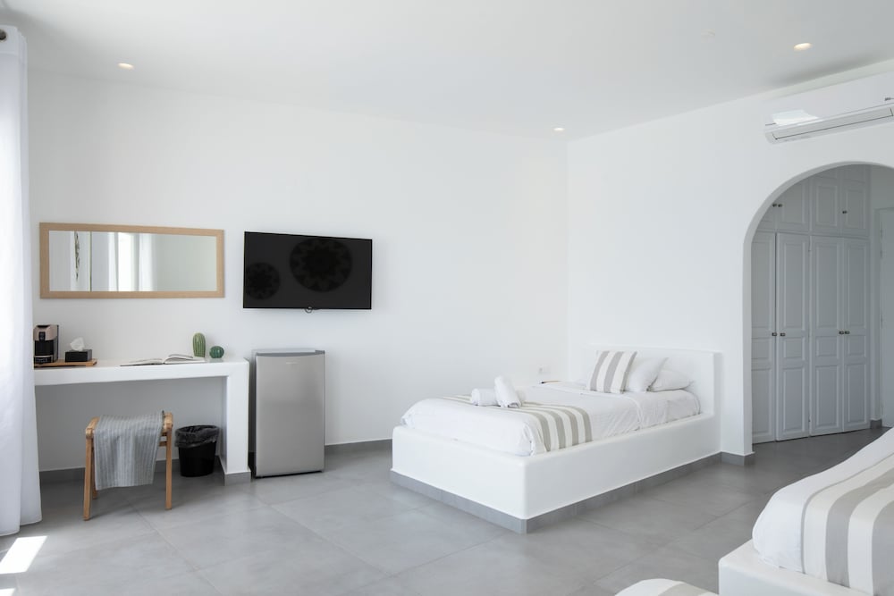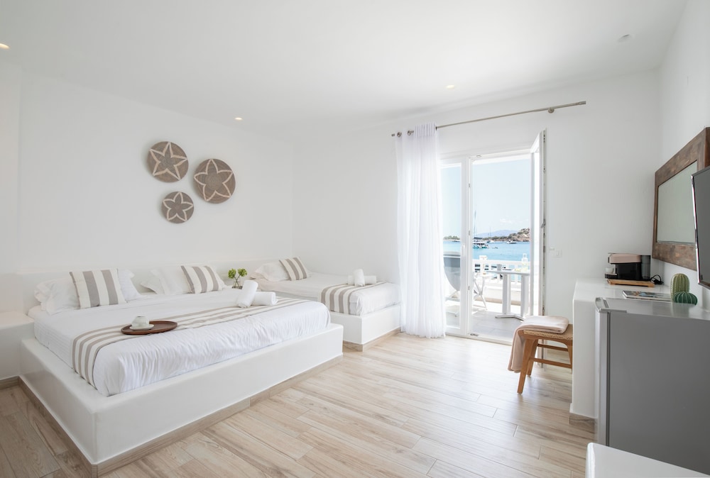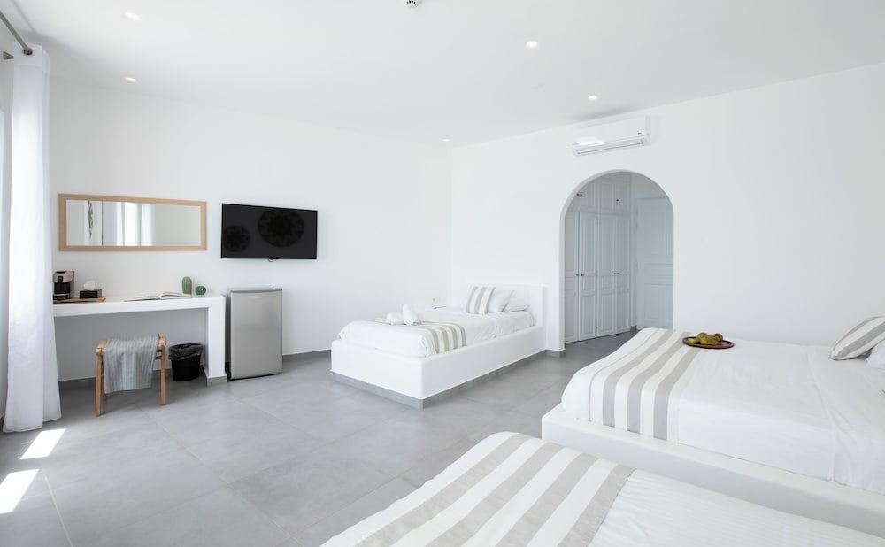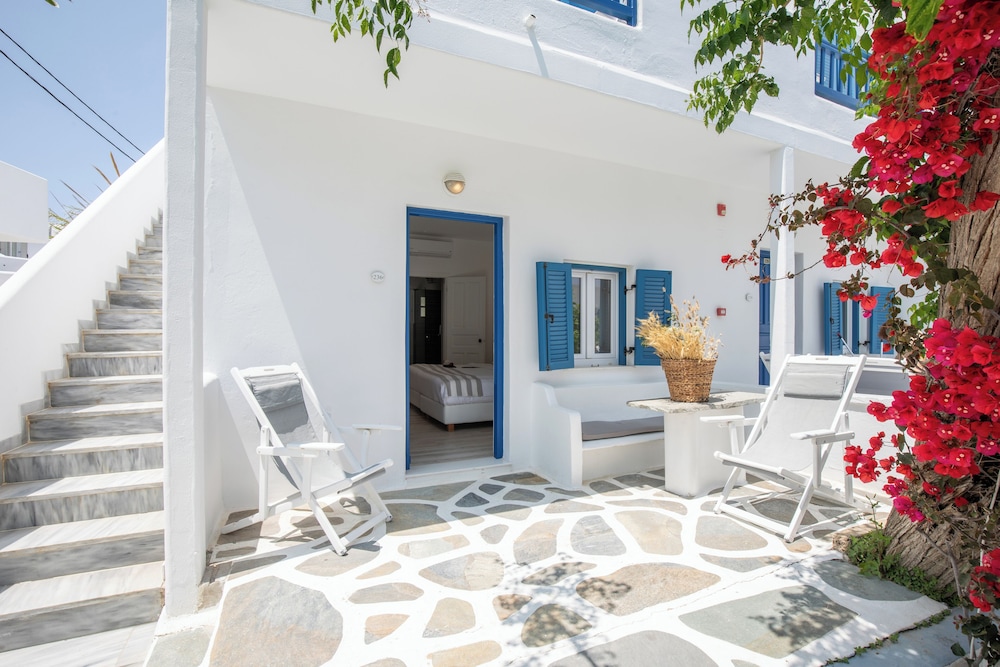 Located in Mykonos, Acrogiali Beachfront Hotel is by the sea, within a 10-minute drive of Psarou Beach and Windmills of Mykonos. This beach hotel is 0.9 mi (1.5 km) from Paranga Beach and 1.2 mi (1.9 km) from Paradise Beach. Make yourself at home in one of the 70 guestrooms featuring refrigerators and espresso makers. Rooms have private balconies or patios. 32-inch flat-screen televisions are provided, with satellite programming available. Private bathrooms with showers feature rainfall showerheads and complimentary toiletries. Distances are displayed to the nearest 0.1 mile and kilometer.