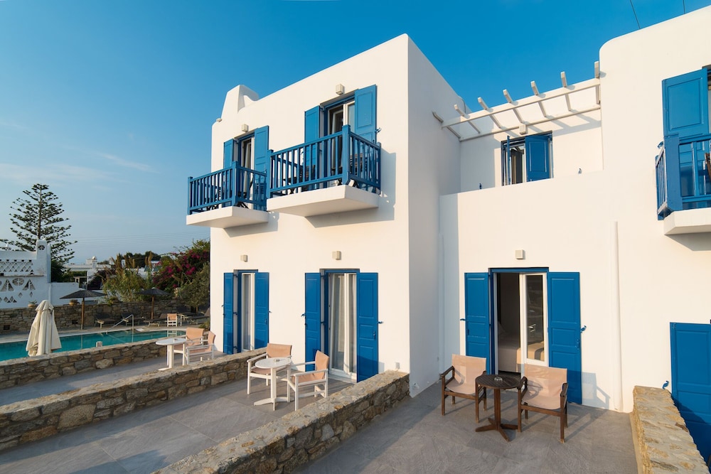 When you stay at Vienoula's Garden in Mykonos, you'll be near the airport, within a 5-minute drive of Windmills of Mykonos and Mykonos Old Port. This hotel is 2.9 mi (4.7 km) from Mykonos New Port and 1.3 mi (2.1 km) from Ornos Beach. Make yourself at home in one of the 27 air-conditioned rooms featuring refrigerators. Rooms have private balconies or patios. Complimentary wireless internet access keeps you connected, and satellite programming is available for your entertainment. Private bathrooms with bathtubs or showers feature hair dryers and slippers. Distances are displayed to the nearest 0.1 mile and kilometer.