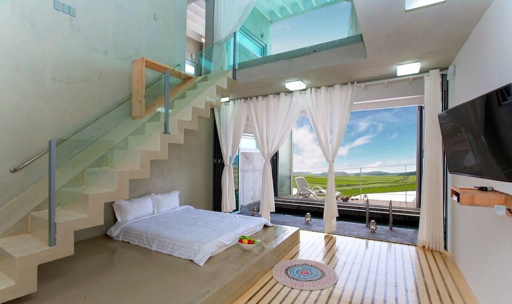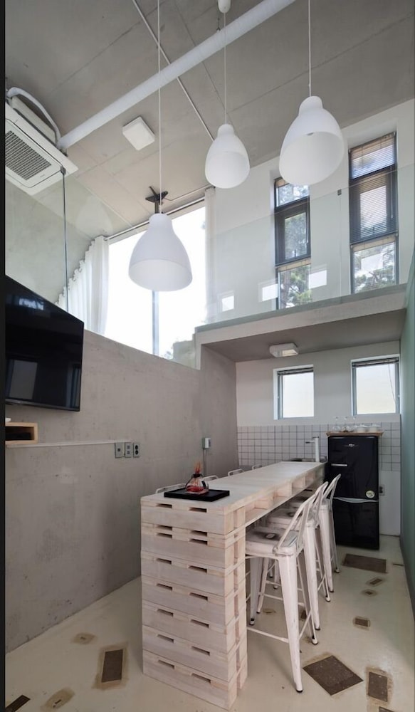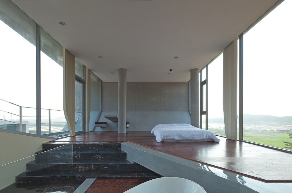 Located in Taean, Pearl Bay Poolvilla is a 4-minute drive from Anmyeondo Jurassic Museum and 8 minutes from Anmyeondo Harbor. This pension is 26.4 mi (42.5 km) from Daecheon Beach and 5 mi (8.1 km) from Sambong Beach. Make yourself at home in one of the 14 air-conditioned rooms featuring heated floors and LED televisions. Complimentary wireless internet access is available to keep you connected. Conveniences include refrigerators and microwaves. Distances are displayed to the nearest 0.1 mile and kilometer.