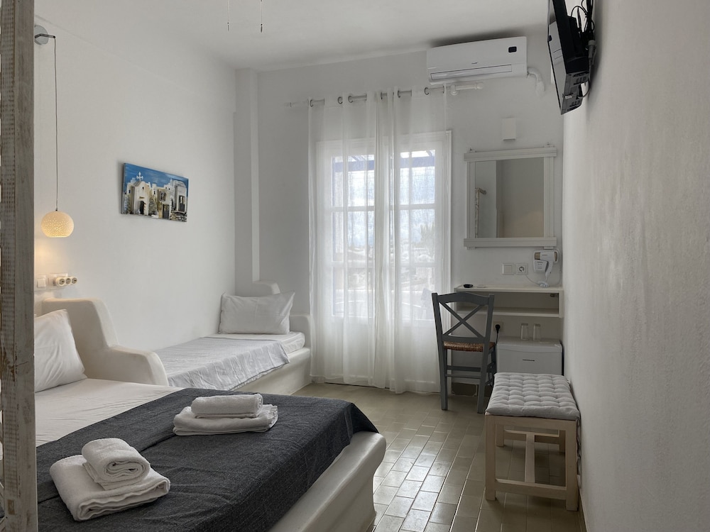 Located in Paros, Serene Hill is connected to a shopping center, a 2-minute drive from Naousa Harbour and 7 minutes from Kolymbithres Beach. This guesthouse is 5.6 mi (9.1 km) from Livadia Beach and 5.9 mi (9.5 km) from Port of Parikia. Make yourself at home in one of the 12 air-conditioned rooms featuring refrigerators. Complimentary wireless internet access keeps you connected, and satellite programming is available for your entertainment. Bathrooms have showers and hair dryers. Conveniences include coffee/tea makers and ceiling fans, and housekeeping is provided daily. Distances are displayed to the nearest 0.1 mile and kilometer.