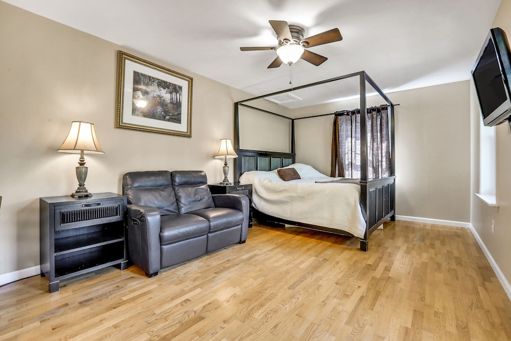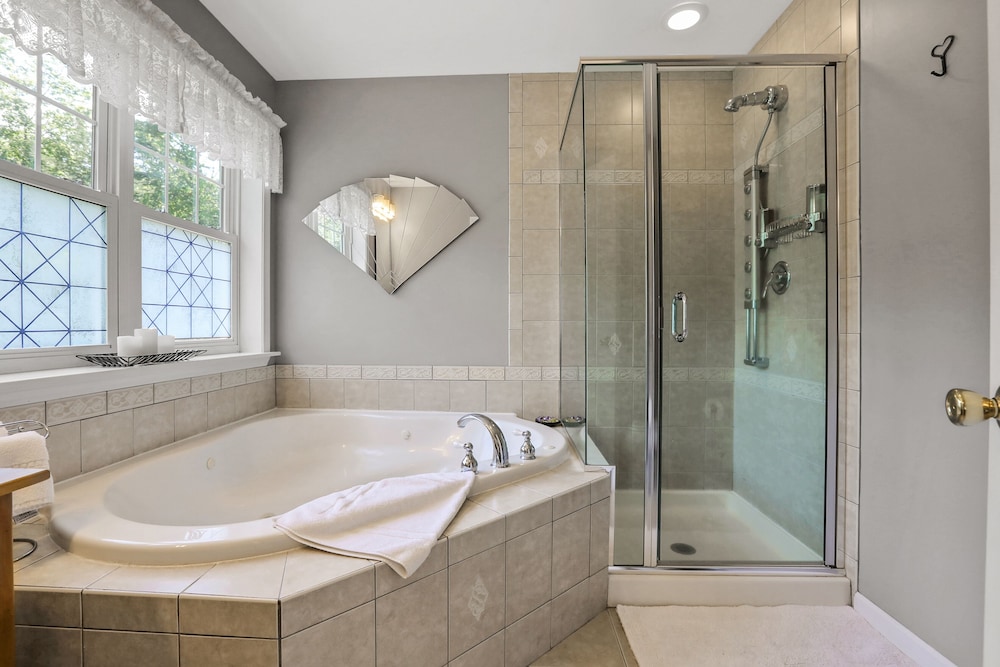 Located in New Paltz, Moondance Ridge Bed & Breakfast is in a regional park, within a 5-minute drive of Historic Huguenot Street and Huguenot Street Historic District. This spa guesthouse is 14.3 mi (23.1 km) from Vassar College and 15.7 mi (25.2 km) from Culinary Institute of America. Treat yourself to a stay in one of the 5 individually decorated guestrooms, featuring fireplaces and indoor private hot tubs. Complimentary wireless internet access keeps you connected, and 45-inch Smart televisions are provided for your entertainment. Private bathrooms with shower/tub combinations feature jetted bathtubs and hair dryers. Conveniences include desks and separate sitting areas. Distances are displayed to the nearest 0.1 mile and kilometer.