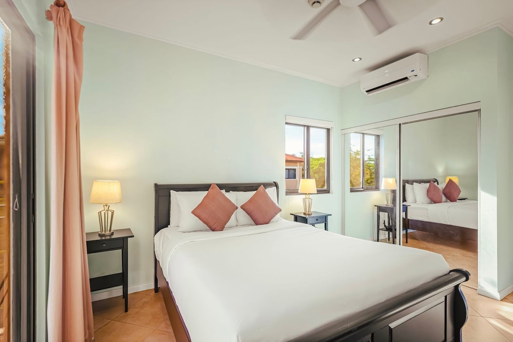 Located in Noord (Malmok), Bocobay Gold Coast Resort is within a 5-minute drive of Palm Beach and Stellaris Casino. This golf condo is 1.6 mi (2.6 km) from Arashi Beach and 2.7 mi (4.4 km) from Hyatt Regency Casino. Make yourself at home in one of the 13 individually decorated guestrooms, featuring kitchens with full-sized refrigerators/freezers and stovetops. Rooms have private balconies or patios. 50-inch Smart televisions with digital programming provide entertainment, while complimentary wireless internet access keeps you connected. Conveniences include microwaves and coffee/tea makers, and housekeeping is provided on request. Distances are displayed to the nearest 0.1 mile and kilometer.