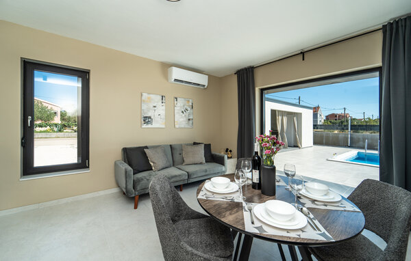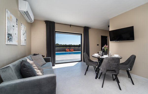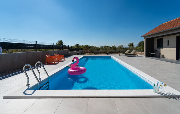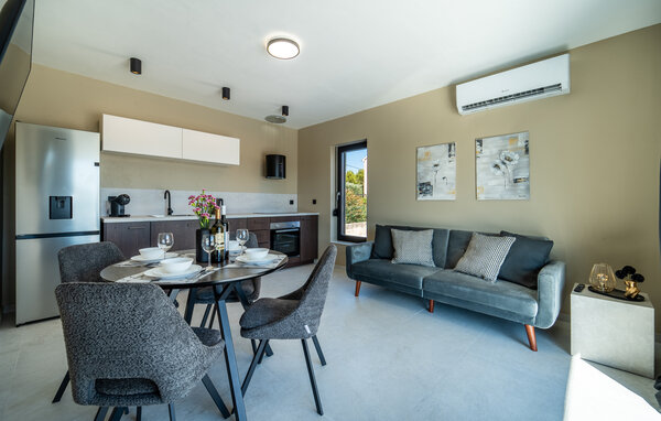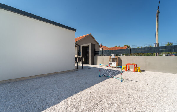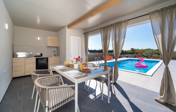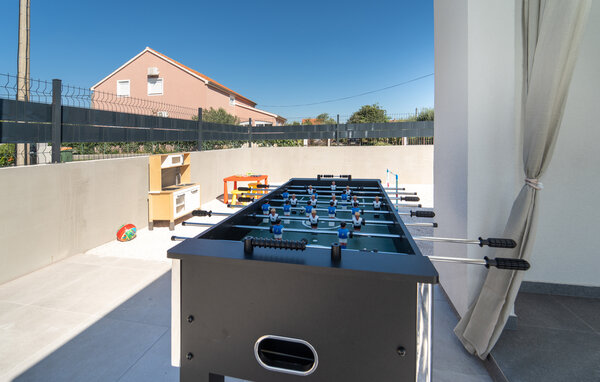 A holiday in a holiday home in Paljuv promises relaxation and numerous activities. The modern holiday home offers you all the amenities you need for a comfortable stay and is the ideal starting point for discovering the beauty of the region. Start your day with a refreshing dip in the private pool, which is surrounded by a spacious sun terrace. Relax on one of the loungers and enjoy the warm Croatian sun. The well-equipped outdoor kitchen invites you to enjoy meals together in the open air. Spend cosy evenings in the covered dining area, which offers a wonderful view of the pool. You can also play sports in your holiday home, for example table football, football or badminton.