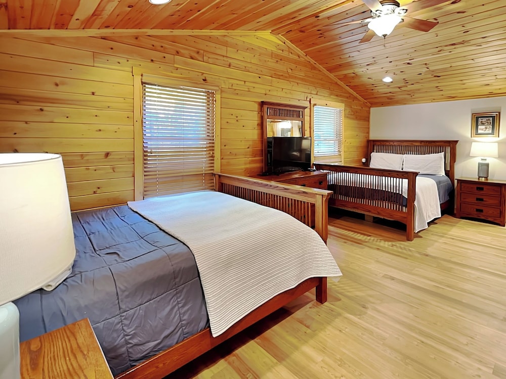 With a stay at this cabin in Oakland, you'll be within a 15-minute drive of Deep Creek Lake and Wisp Resort. This cabin is 1.9 mi (3 km) from Deep Creek Lake State Park and 4.9 mi (7.9 km) from Mount Nebo Wildlife Management Area. Treat yourself to a stay in this individually decorated cabin, which features a fireplace and an outdoor private hot tub. There's a private balcony or patio. A kitchen is outfitted with a refrigerator, an oven, and a stovetop. A 50-inch flat-screen television is provided, with cable programming available. Distances are displayed to the nearest 0.1 mile and kilometer.