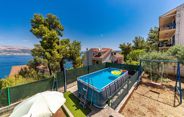 This spacious, modern and functionally furnished vacation home consists of three separate living units. The floors are connected by outdoor stairs. Enjoy the surroundings with the fantastic view from several terraces and explore the nearby beaches, which are only 200 m from the apartments. An opportunity for swimming on the cliffs is only 30 m away. The historic town of Trogir, a World Heritage Site, and Split International Airport are nearby. You can find refreshment in the swimming pool. The parking place is about 80 m above the house.