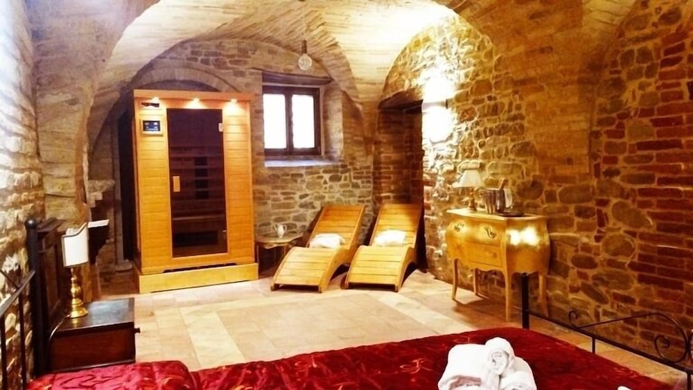 With a stay at Colle Indaco Country House & Wellness in Ortezzano, you'll be within a 15-minute drive of Cantina dei Monti and Casale Vitali Winery. This spa farm stay is 6.6 mi (10.6 km) from Museum of Itinerant Work Bicycles and 8.1 mi (13.1 km) from Museum of the Picene Tombs. Make yourself at home in one of the 7 air-conditioned rooms featuring flat-screen televisions. Complimentary wireless internet access keeps you connected, and digital programming is available for your entertainment. Private bathrooms have deep soaking bathtubs and complimentary toiletries. Conveniences include desks, housekeeping is provided once per stay, and cribs/infant beds (surcharge) can be requested. Distances are displayed to the nearest 0.1 mile and kilometer.