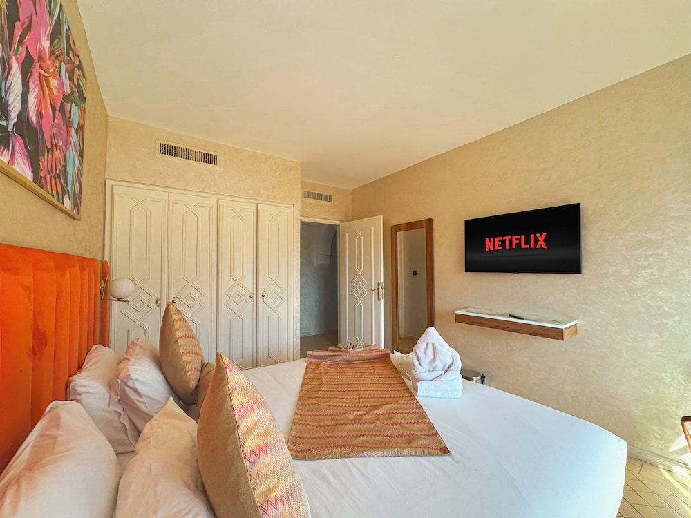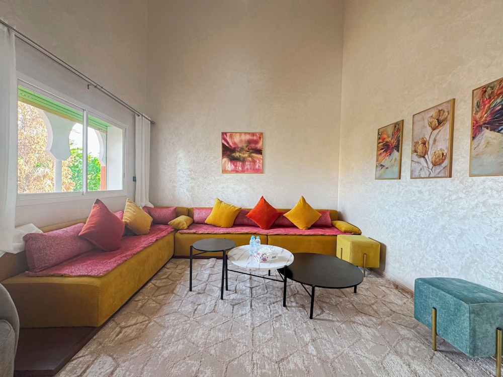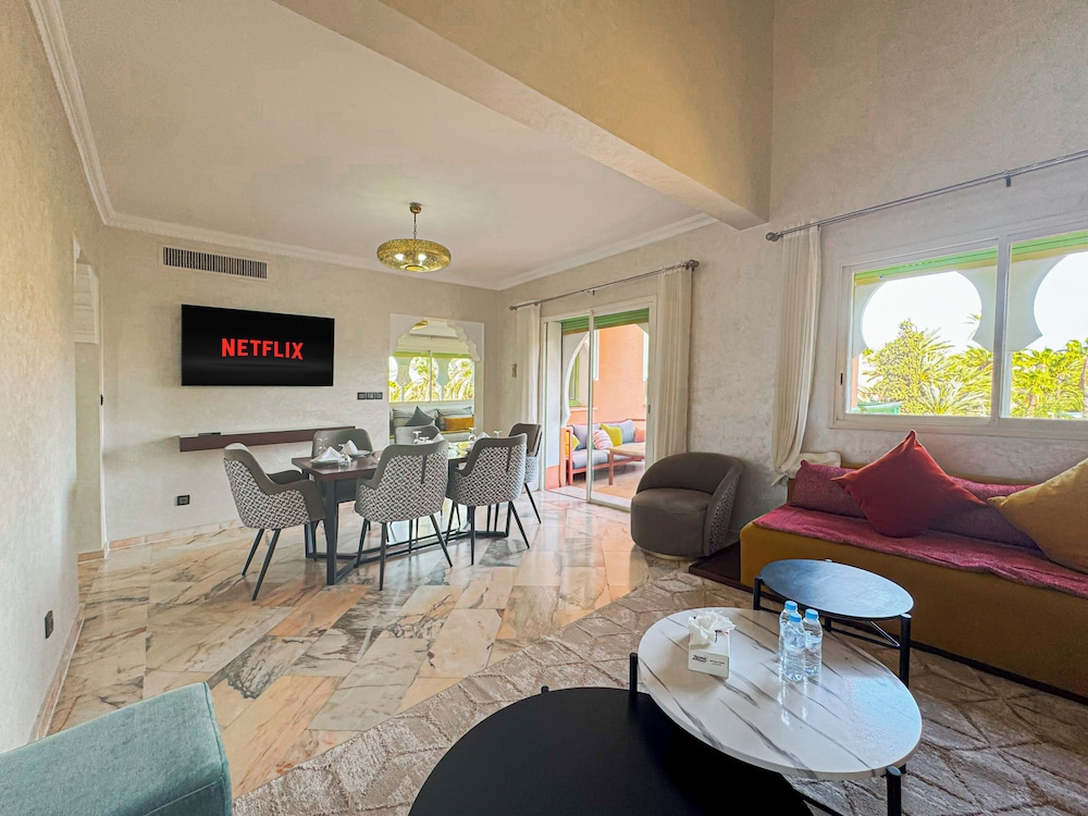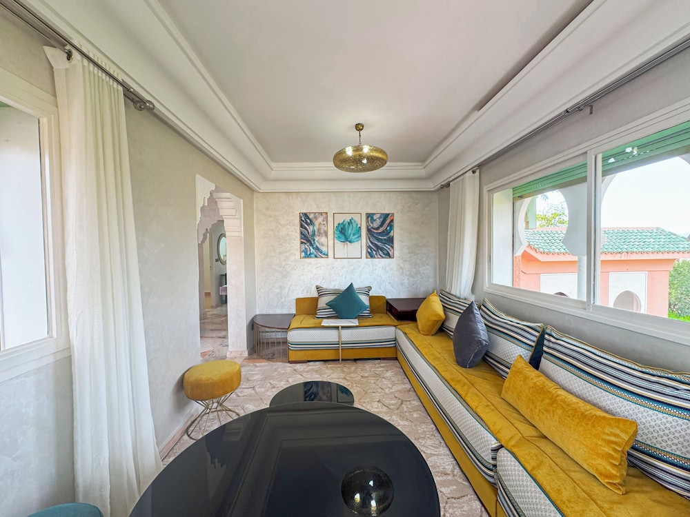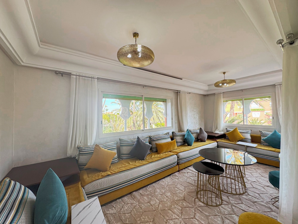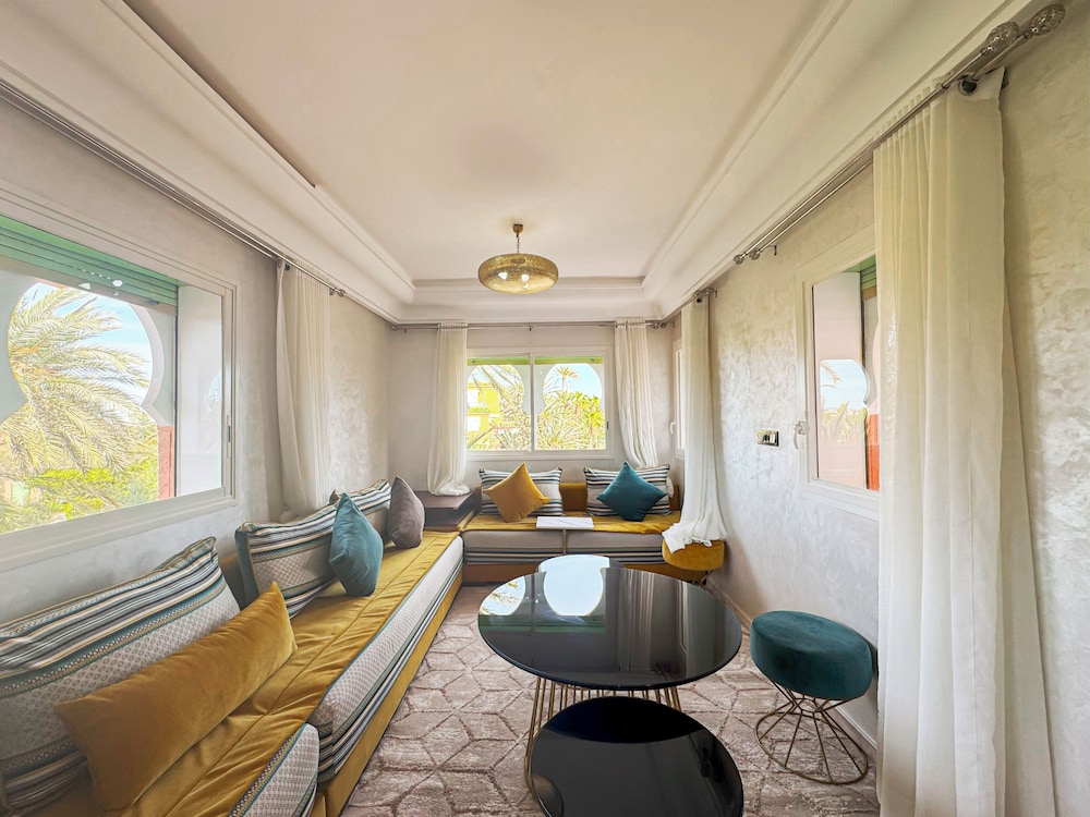 Located in Marrakech (Palmeraie), Luxurious Duplex in a Peaceful Resort is within a 10-minute drive of Majorelle Garden and Marrakech Plaza. This spa resort is 5.5 mi (8.8 km) from Jemaa el-Fnaa and 5.2 mi (8.3 km) from Avenue Mohamed VI. Make yourself at home in one of the 2 guestrooms. Complimentary wireless internet access is available to keep you connected. Conveniences include washing machines, and housekeeping is provided daily. Distances are displayed to the nearest 0.1 mile and kilometer.