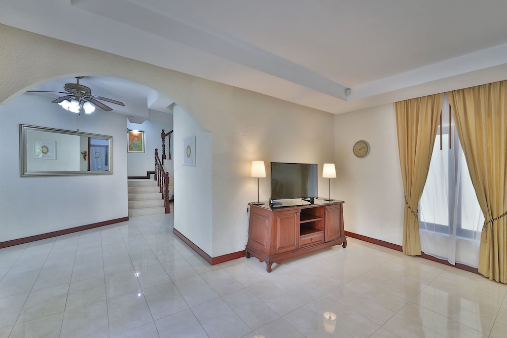With a stay at this villa, you'll be centrally located in Pattaya, within a 5-minute drive of Walking Street and Dongtan Beach. This family-friendly villa is 1.1 mi (1.8 km) from Jomtien Beach and 2.2 mi (3.5 km) from Pattaya Beach. Treat yourself to a stay in this individually decorated villa, which features a private pool and an LCD TV. There's a private furnished lanai. A kitchen is outfitted with a full-sized refrigerator/freezer, a stovetop, and a microwave. Wired and wireless internet access is complimentary, and a flat-screen television with cable programming provides entertainment. A private bathroom has a jetted bathtub and a rainfall showerhead. Distances are displayed to the nearest 0.1 mile and kilometer.