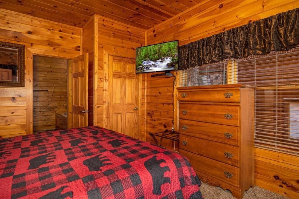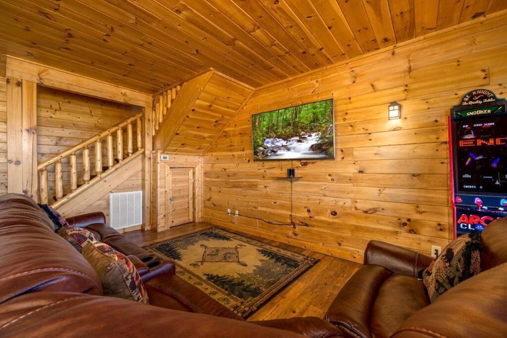 When you stay at this cabin in Sevierville, you'll be in the mountains, within a 15-minute drive of Titanic Museum and Island at Pigeon Forge. This luxury cabin is 9.1 mi (14.6 km) from Great Smoky Mountains National Park and 10 mi (16 km) from Dollywood. Treat yourself to a stay in this individually decorated cabin, which features a fireplace and a flat-screen TV. There's a private furnished balcony. A kitchen is outfitted with a refrigerator, an oven, and a stovetop. Digital programming and a video-game console are provided for your entertainment, while complimentary wireless internet access keeps you connected. A private bathroom has a jetted bathtub and designer toiletries. Distances are displayed to the nearest 0.1 mile and kilometer.