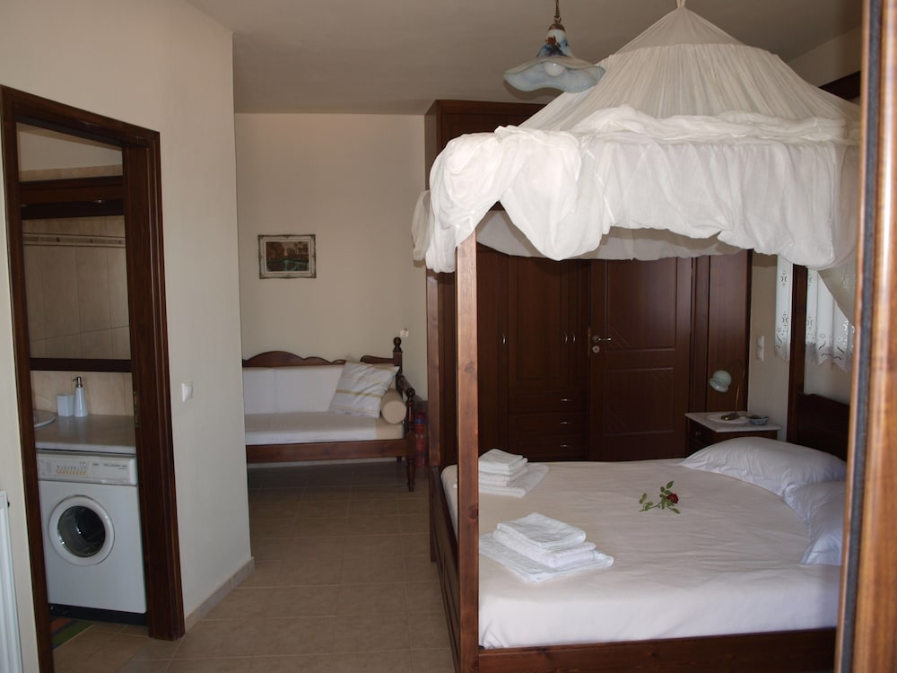 With a stay at this villa in Platanias, you'll be near the beach, just a 5-minute walk from Karavitakis Winery and a 2-minute drive from Olive Tree of Vouves. This villa is 3.9 mi (6.2 km) from Tavrontis Beach and 4.9 mi (7.8 km) from Orthodox Academy of Crete. Make yourself comfortable in your air-conditioned villa, featuring a refrigerator and a DVD player. There's a private furnished balcony/patio. A flat-screen television with satellite programming provides entertainment, while complimentary wireless internet access keeps you connected. A private bathroom with a separate bathtub and shower features a jetted bathtub and complimentary toiletries. Distances are displayed to the nearest 0.1 mile and kilometer.