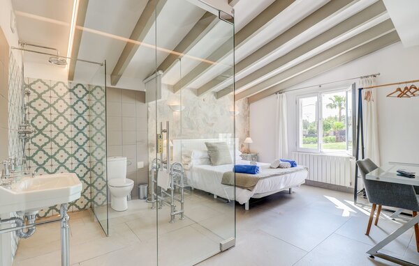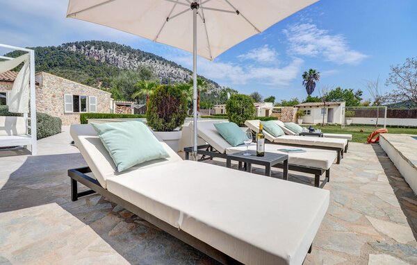 The holiday home is located in a gently rolling landscape 2 km south of Pollença in the north-east of Mallorca. There are good shopping facilities both in Pollença and in Alcúdia, 9 km away. The long sandy bay of Bahía de Pollença and the 10 km long dream beach of Alcúdia are both around 15 minutes away by car.