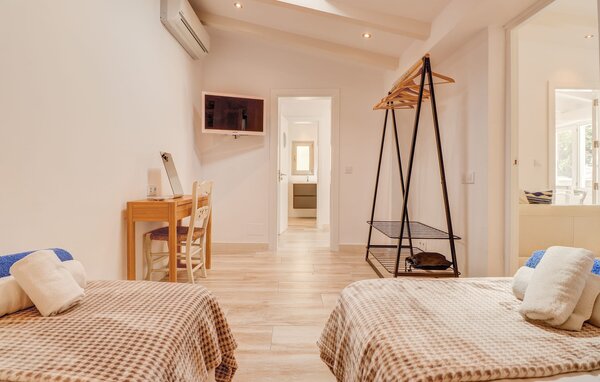 Inside, the elegant, single-storey property is bright and inviting. The living room with cosy sofa, fireplace and English TV opens directly onto the terrace. Adjacent is a fully equipped country-style kitchen with a dining area for all guests. The villa has four double bedrooms, with the master bedroom and a further double bedroom in the main house, as well as a separate bathroom and a fitness room. Two individual casitas provide additional accommodation, the first has a double bedroom, bathroom and kitchenette with dining area. The second has a double bedroom and en-suite bathroom. All areas are equipped with air conditioning and heating to ensure a comfortable stay.