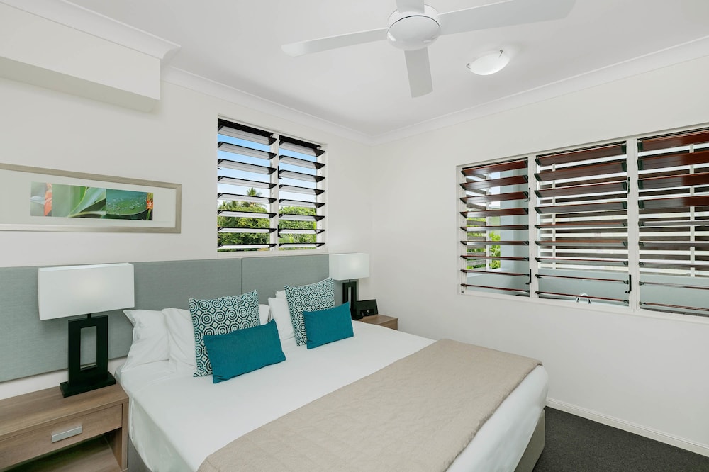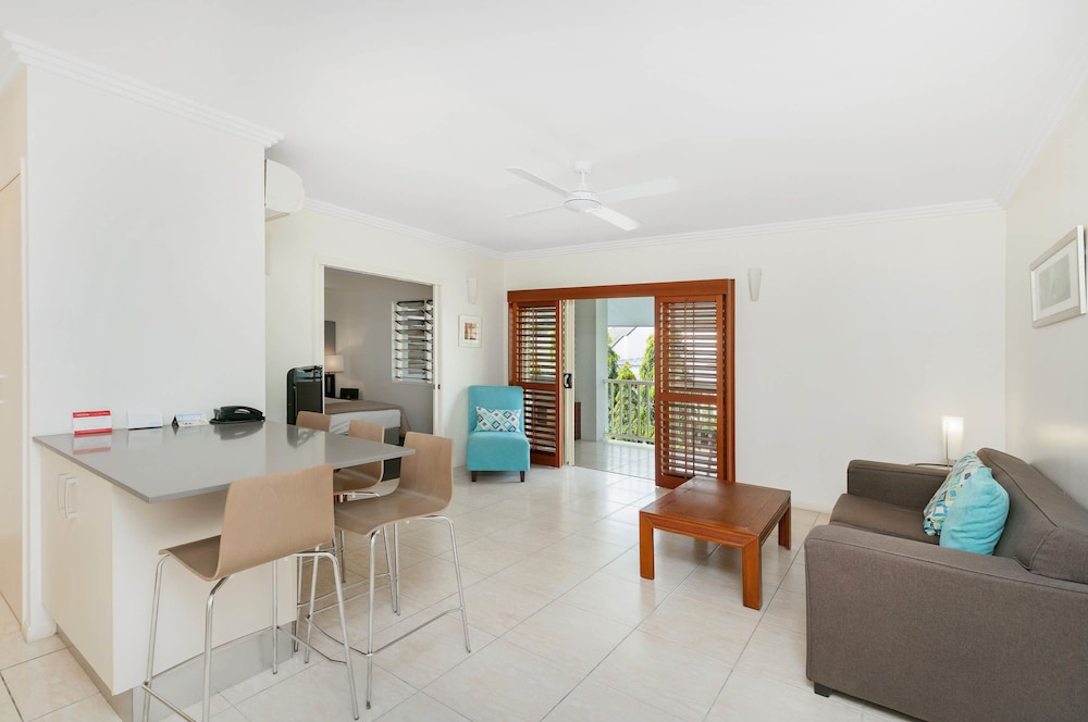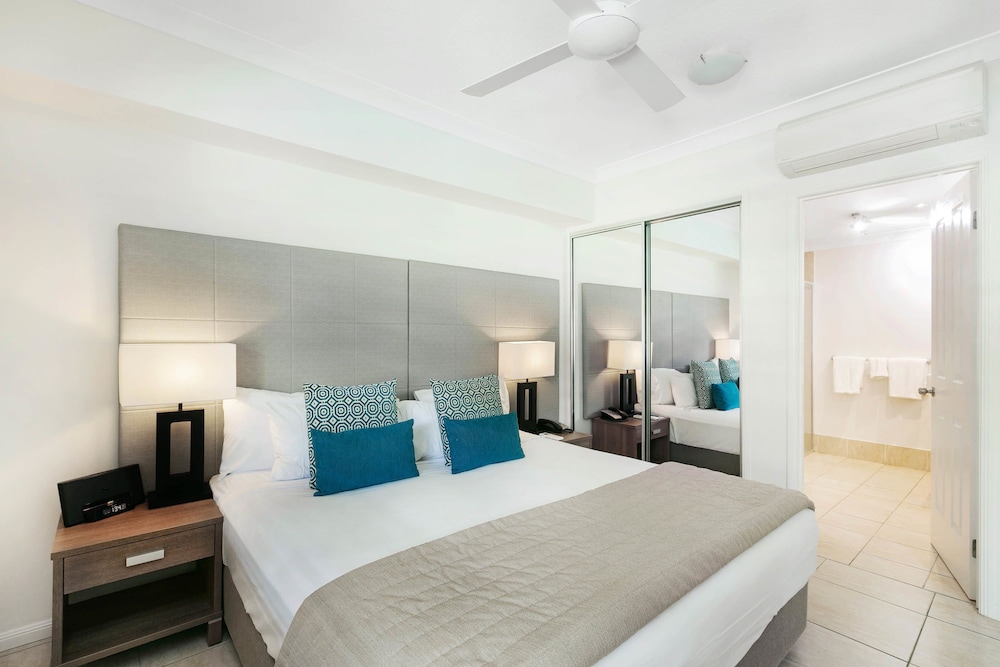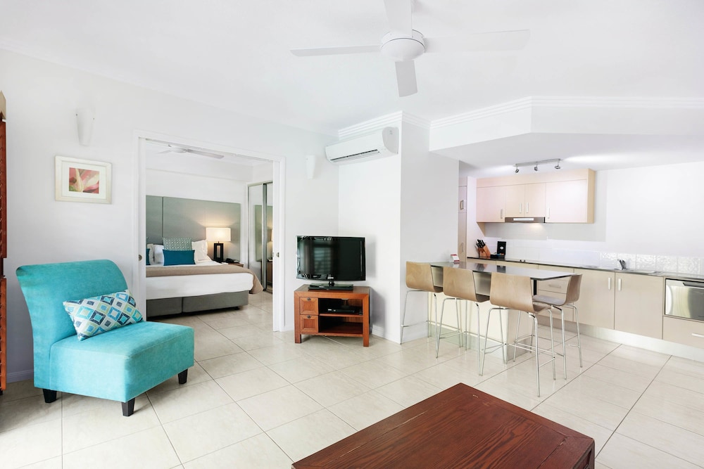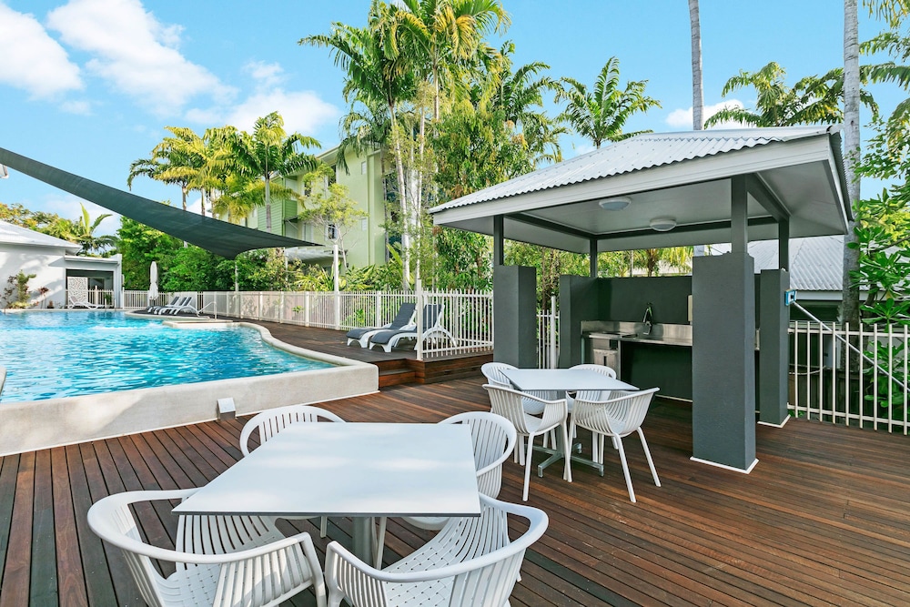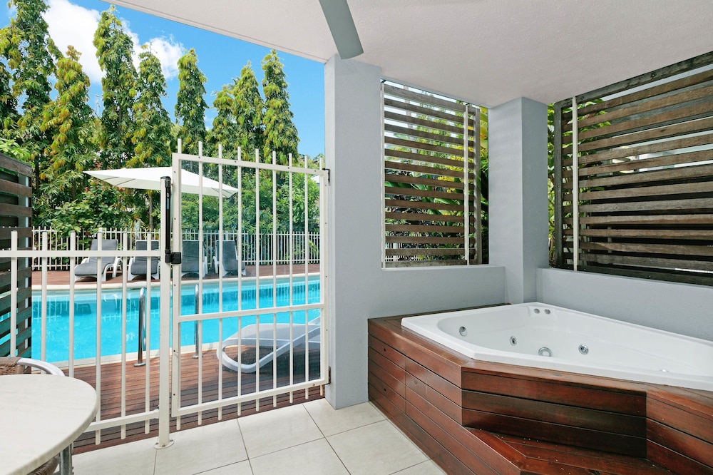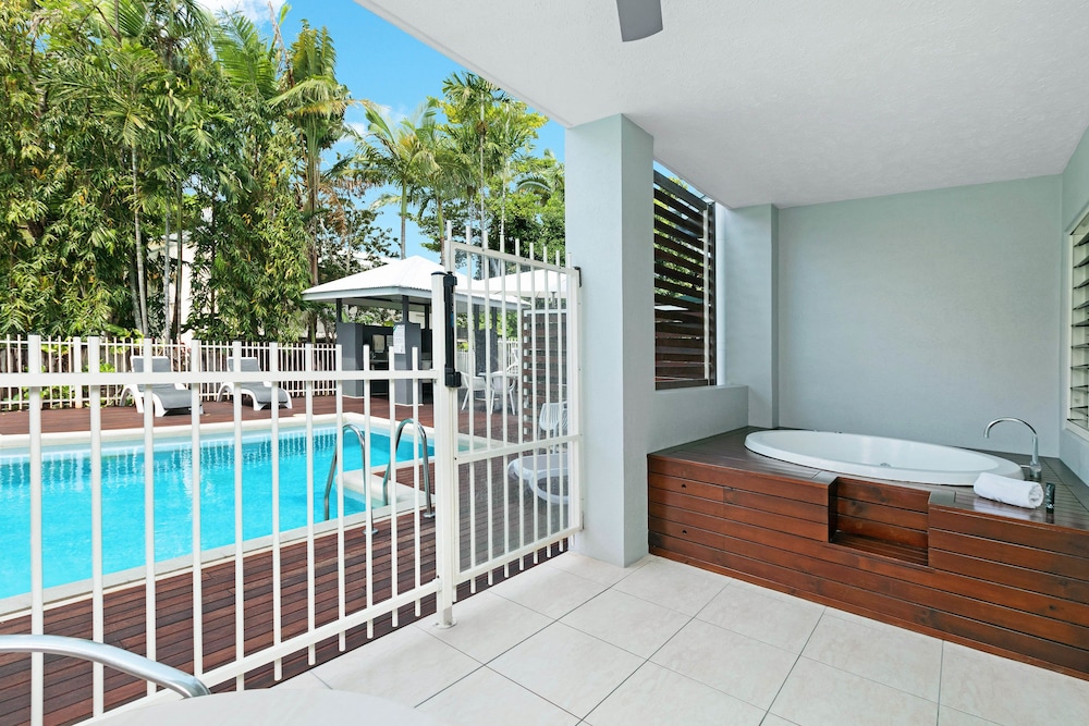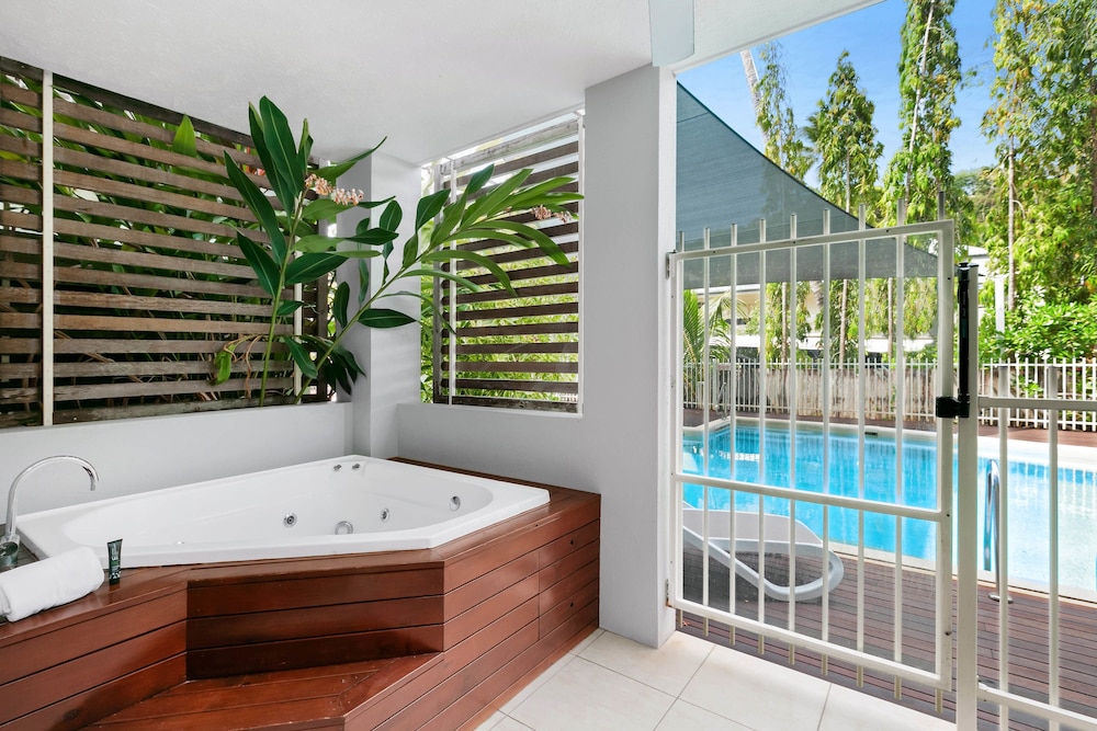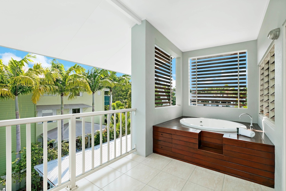 With a stay at Mantra Aqueous on Port in Port Douglas, you'll be near the beach, just a 1-minute walk from Macrossan Street and 5 minutes by foot from Port Douglas Splash Park. This aparthotel is 0.3 mi (0.4 km) from Four Mile Beach and 0.3 mi (0.5 km) from Port Village Shopping Centre. Make yourself at home in one of the 59 air-conditioned rooms featuring outdoor private hot tubs and flat-screen televisions. Rooms have private balconies. Cable programming and DVD players are provided for your entertainment, while wireless internet access (surcharge) keeps you connected. Conveniences include phones, as well as safes and refrigerators. Distances are displayed to the nearest 0.1 mile and kilometer.