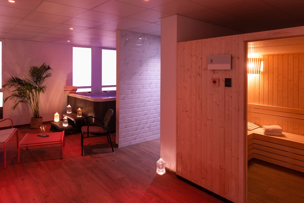 Located in Saint-Mars-la-Reorthe, Hotel Omnubo Collection is a 1-minute drive from Savonnerie des Collines and 5 minutes from Puy du Fou. This spa hotel is 2.7 mi (4.3 km) from Le Grand Parc du Puy du Fou and 8.2 mi (13.2 km) from Mont des Alouettes. Make yourself at home in one of the 40 individually decorated guestrooms, featuring espresso makers and flat-screen televisions. Complimentary wireless internet access keeps you connected, and cable programming is available for your entertainment. Private bathrooms with showers feature rainfall showerheads and complimentary toiletries. Conveniences include laptop-compatible safes and complimentary bottled water, as well as phones with free local calls. Distances are displayed to the nearest 0.1 mile and kilometer.