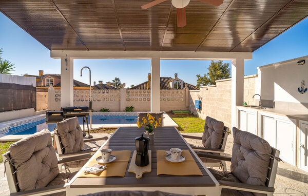 Look forward to your next holiday in Spain in this inviting holiday home in Salteras, not far from the lively city of Seville. With its private pool and stylish furnishings, the house offers everything you need for a relaxing break. The cosy seating area in the living area invites you to put your feet up and read a book or enjoy a film. The modern, colourfully designed kitchen offers you the opportunity to prepare delicious meals for your loved ones. For a change of pace, the top floor is equipped as a leisure area with a table football game and a small selection of fitness equipment.