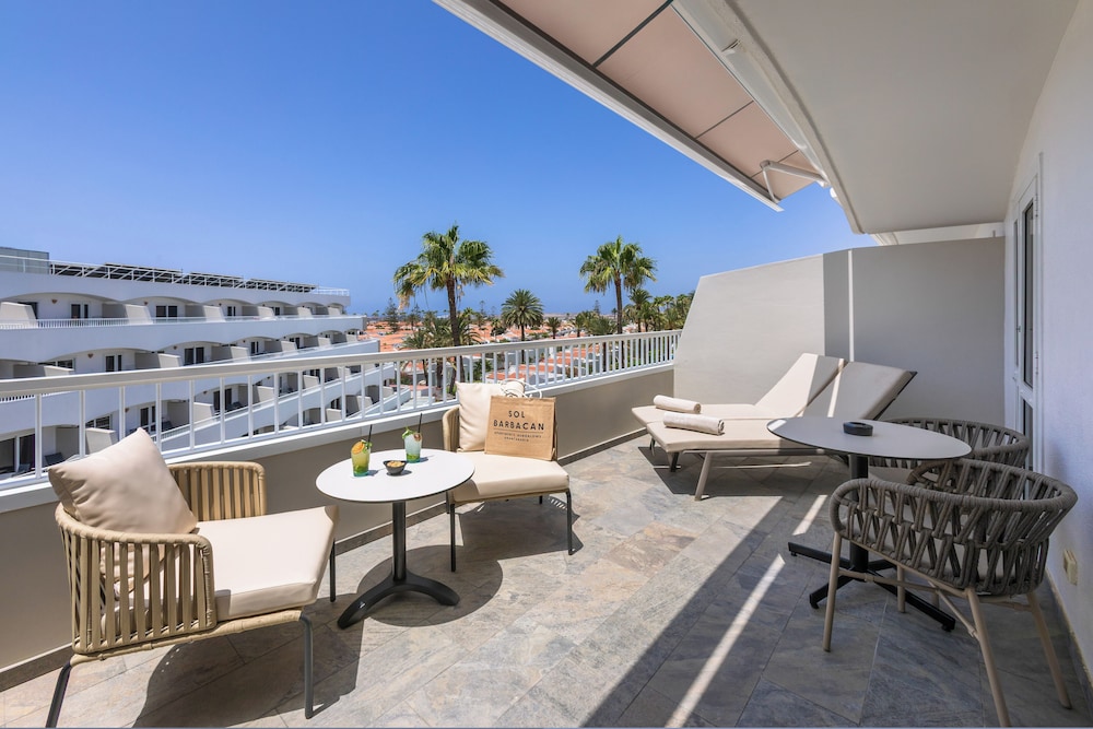 Located in San Bartolomé de Tirajana (Playa del Ingles), Sol Barbacan is within a 5-minute walk of Yumbo Shopping Center and within a 5-minute drive of Holiday World Maspalomas. This family-friendly aparthotel is 1.4 mi (2.2 km) from Maspalomas Dunes and 13.1 mi (21.1 km) from Amadores Beach. Make yourself at home in one of the 150 air-conditioned rooms featuring kitchens with refrigerators and stovetops. Rooms have private furnished balconies or patios. 32-inch flat-screen televisions with satellite programming provide entertainment, while complimentary wireless internet access keeps you connected. Conveniences include phones, as well as desks and microwaves. Distances are displayed to the nearest 0.1 mile and kilometer.