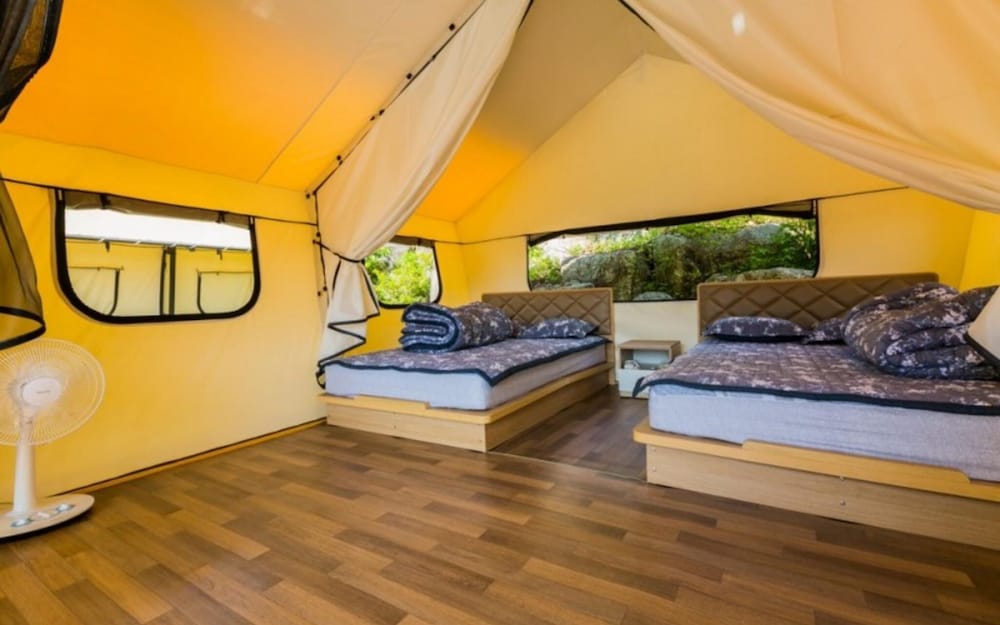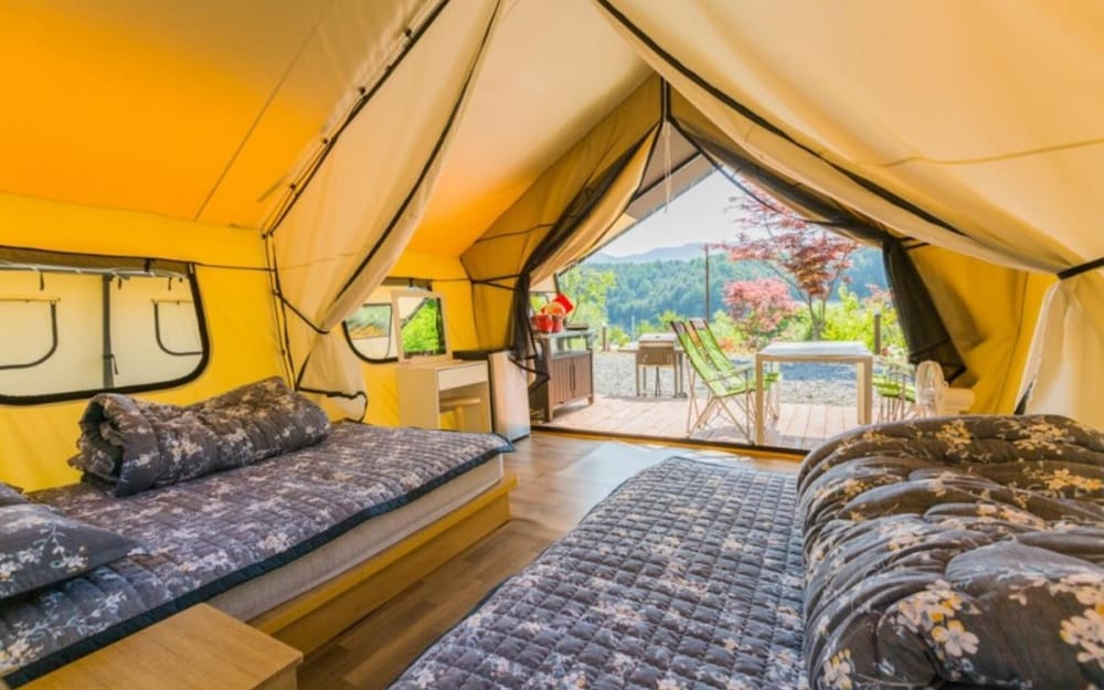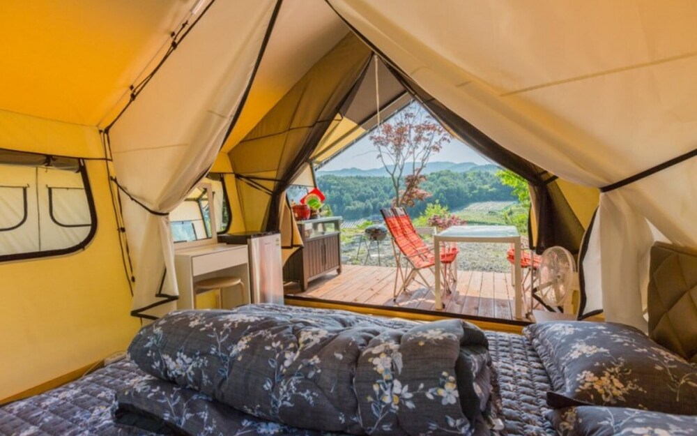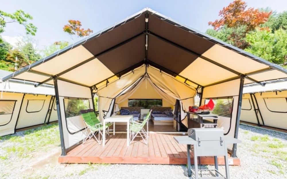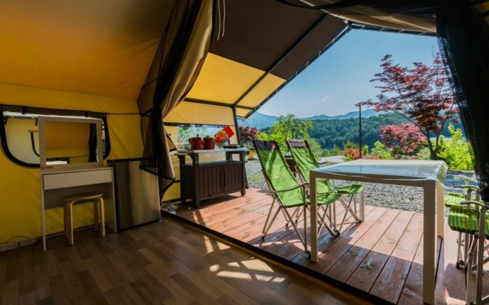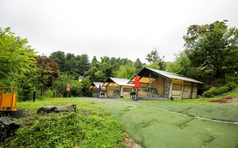 With a stay at Gapyeong Captain Caravan Glamping in Gapyeong, you'll be within a 10-minute drive of The Garden of Morning Calm and Saemteo Yoowonji. This pension is 13.8 mi (22.2 km) from Nami Island and 17 mi (27.4 km) from Elysian Gangchon Ski Resort. Make yourself at home in one of the 16 air-conditioned rooms featuring refrigerators. Complimentary wireless internet access is available to keep you connected. Bathrooms have bathtubs or showers and hair dryers. Distances are displayed to the nearest 0.1 mile and kilometer.