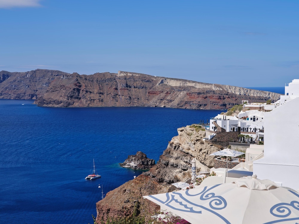 When you stay at Andronis Boutique Hotel in Santorini, you'll be near the beach, just steps from Oia Blue Dome Church Viewpoint and Santorini Caldera. This luxury hotel is 0.1 mi (0.2 km) from Oia Castle and 14.5 mi (23.3 km) from Athinios Port. Make yourself at home in one of the 23 air-conditioned rooms featuring minibars and espresso makers. Your Tempur-Pedic bed comes with Egyptian cotton sheets. Rooms have private furnished patios. 32-inch Smart televisions with satellite programming provide entertainment, while complimentary wireless internet access keeps you connected. Bathrooms feature bathtubs or showers, complimentary toiletries, and hair dryers. Distances are displayed to the nearest 0.1 mile and kilometer.