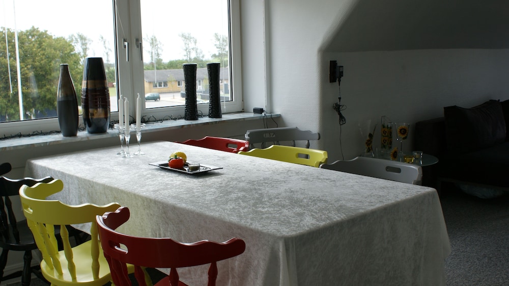 Located in Nykobing Mors, Event4U - ophold og krea is within a 5-minute drive of Fossil- og Molermuseet Museum and Agricultural Museum Skarregaard. This hotel is 2.7 mi (4.3 km) from Ejerslev Harbor and 6.4 mi (10.3 km) from Salgerhoj Cliffs. Make yourself at home in one of the 6 guestrooms featuring refrigerators and minibars. 32-inch flat-screen televisions with digital programming provide entertainment, while complimentary wireless internet access keeps you connected. Bathrooms have showers and hair dryers. Conveniences include separate sitting areas and coffee/tea makers, and housekeeping is provided on request. Distances are displayed to the nearest 0.1 mile and kilometer.