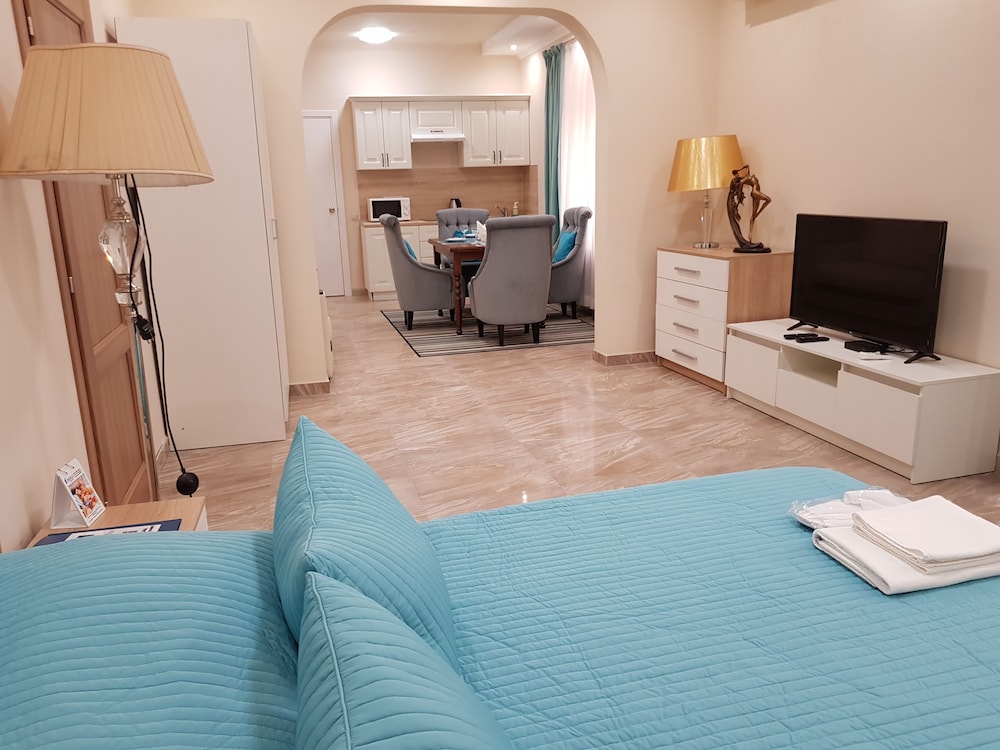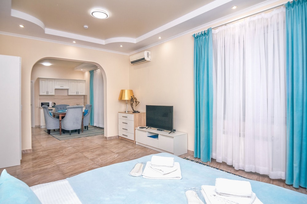 With a stay at Hotel Plutus, you'll be centrally located in Sochi, a short 8-minute walk from Riviera Park and 13 minutes by foot from Port of Sochi. This beach hotel is 1.1 mi (1.7 km) from Riviera Beach and 2 mi (3.2 km) from MoreMall. Make yourself at home in one of the 10 air-conditioned rooms featuring flat-screen televisions. Complimentary wireless internet access keeps you connected, and digital programming is available for your entertainment. Private bathrooms with showers feature complimentary toiletries and hair dryers. Conveniences include safes and irons/ironing boards, and housekeeping is provided daily. Distances are displayed to the nearest 0.1 mile and kilometer.