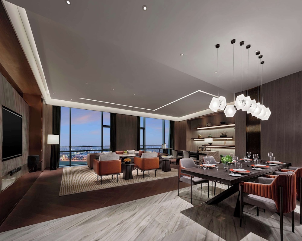 With a stay at Hyatt Regency Shanghai Songjiang in Shanghai (Songjiang District), you'll be within a 10-minute drive of Sheshan Golf Club and Happy Valley Amusement Park. This hotel is 13 mi (20.9 km) from National Exhibition and Convention Center and 4.2 mi (6.8 km) from Square Pagoda Park. Make yourself at home in one of the 256 air-conditioned rooms featuring minibars and LED televisions. Complimentary wireless internet access keeps you connected, and satellite programming is available for your entertainment. Private bathrooms with separate bathtubs and showers feature deep soaking bathtubs and rainfall showerheads. Conveniences include phones, as well as safes and desks. Distances are displayed to the nearest 0.1 mile and kilometer.
