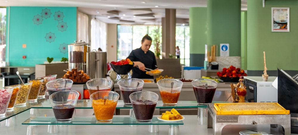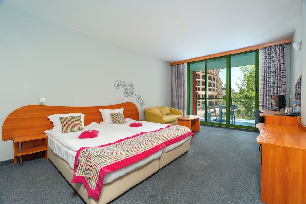 When you stay at MPM Kalina Garden Hotel in Nessebar, you'll be near the beach, within a 10-minute walk of Sunny Beach and Luna Park. This all-inclusive hotel is 0.4 mi (0.6 km) from Casino Hrizantema and 1 mi (1.6 km) from Azaro Beach Club. Make yourself at home in one of the 316 air-conditioned rooms featuring flat-screen televisions. Rooms have private balconies. Complimentary wireless internet access keeps you connected, and cable programming is available for your entertainment. Private bathrooms with bathtubs or showers feature complimentary toiletries and hair dryers. Distances are displayed to the nearest 0.1 mile and kilometer.