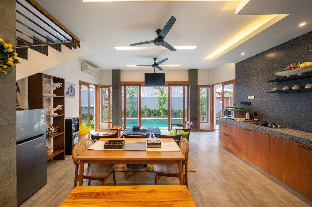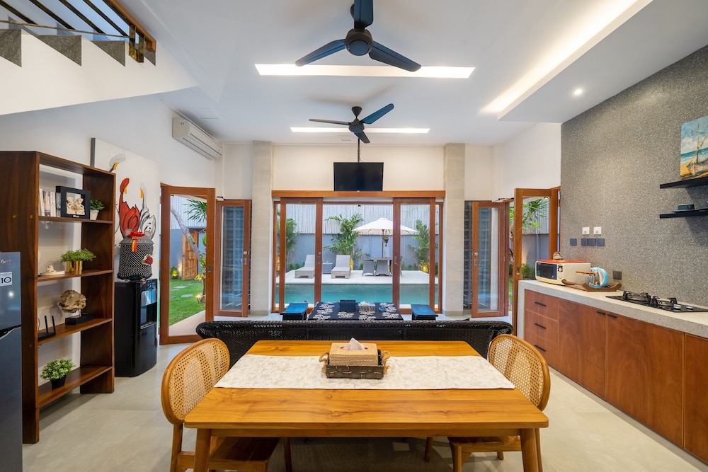 With a stay at Villa Gemuk in Seminyak (Sunset Road), you'll be within a 5-minute drive of Eat Street and Seminyak Square. This villa is 1.5 mi (2.4 km) from Seminyak Beach and 2.1 mi (3.5 km) from Legian Beach. Make yourself at home in one of the 3 air-conditioned rooms featuring private pools and Smart televisions. Kitchenettes are outfitted with refrigerators, stovetops, and microwaves. Complimentary wireless internet access keeps you connected, and cable programming is available for your entertainment. Conveniences include safes and electric kettles, and housekeeping is provided daily. Distances are displayed to the nearest 0.1 mile and kilometer.