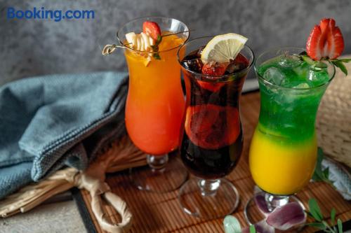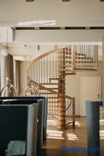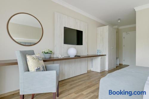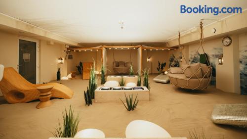 The 3-star Hotel Trzy Wyspy offers accommodations in Świnoujście, just 1969 feet from Promenade, historic Zdrojowy Park and one of the most beautiful sandy beaches in Poland. Guests have free access to the aqua center with a swimming pool, sauna, hot tub and a rest and recovery room, as well as to the fitness center. A small, private parking is available on site and hotel offers a restaurant and free WiFi. Each room includes a flat-screen satellite TV. Some units feature a seating area for your convenience. Each room is equipped with a private bathroom fitted with a shower. Extras include bath robes and free toiletries. Guests are welcome to enjoy a drink at the on-site bar. You will find a 24-hour front desk, a shared lounge, hairdresser's and gift shop at the property. Bike hire is available at this hotel and the area is popular for cycling. Zdrojowy Park is 2625 feet from Hotel Trzy Wyspy, while Swinoujscie lighthouse is 1.1 mi away. The nearest airport is Goleniów Airport, 35 mi from Hotel Trzy Wyspy.
