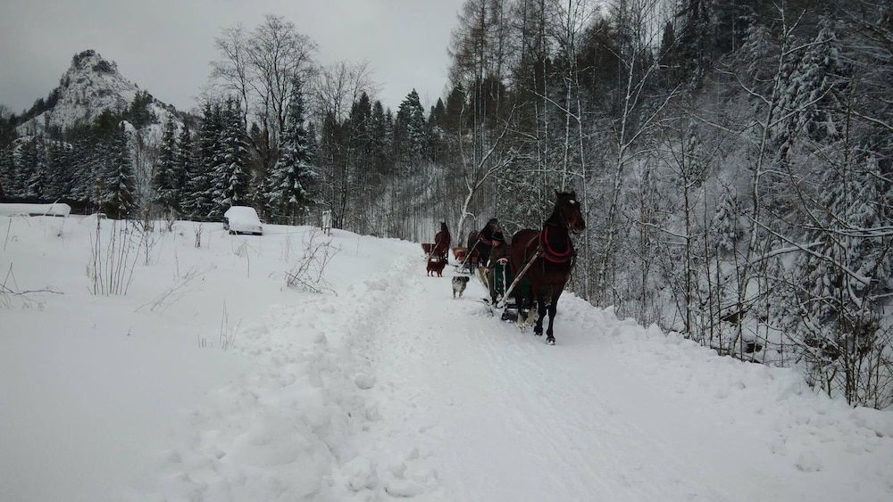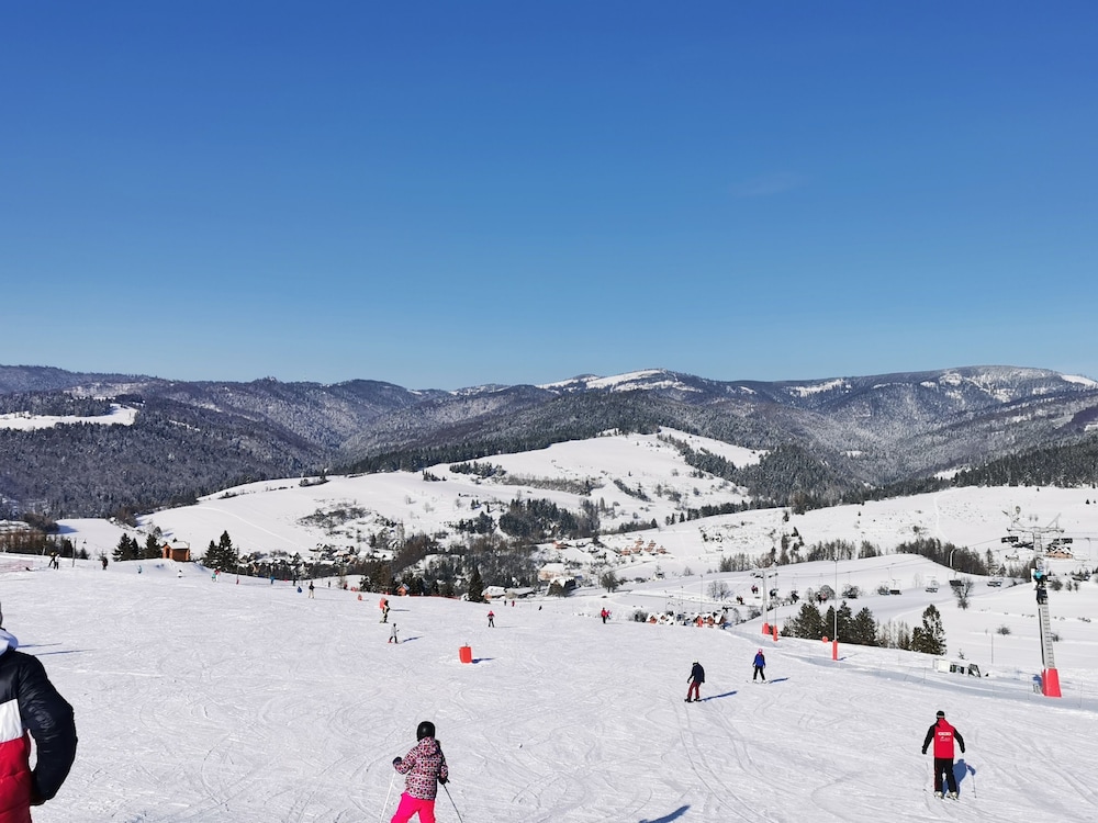 Located in Szczawnica, Jaworki Green Dream is in the mountains, a 1-minute drive from Jaworki Ski Area and 9 minutes from Jaworki Homole Ski Lift. This ski cottage is 4.5 mi (7.2 km) from Henryk Sienkiewicz Monument and 20.1 mi (32.4 km) from Cerveny Klastor Monastery. Treat yourself to a stay in one of the 3 individually decorated guestrooms, featuring fireplaces and private pools. Your memory foam bed comes with Egyptian cotton sheets. Rooms have private furnished balconies or patios. Kitchens are outfitted with full-sized refrigerators/freezers, ovens, and stovetops. 40-inch flat-screen televisions with satellite programming provide entertainment, while complimentary wireless internet access keeps you connected. Distances are displayed to the nearest 0.1 mile and kilometer.