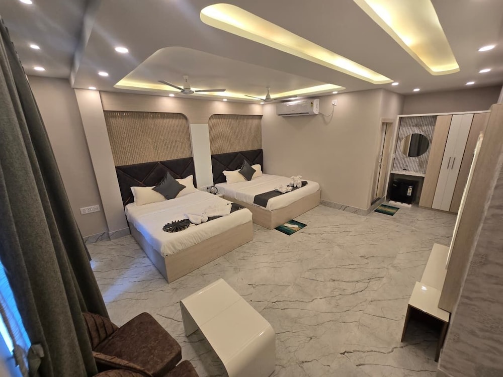 When you stay at Parth King Resort Tarapith in Rampurhat, you'll be within a short 1-minute drive from Tarapith Temple. This resort is within the region of Jagannath Temple and Baba Basukinath Dham. Make yourself at home in one of the 25 air-conditioned rooms featuring LED televisions. Bathrooms feature showers, complimentary toiletries, and toothbrushes and toothpaste. Conveniences include desks and electric kettles, and housekeeping is provided on request. Distances are displayed to the nearest 0.1 mile and kilometer.