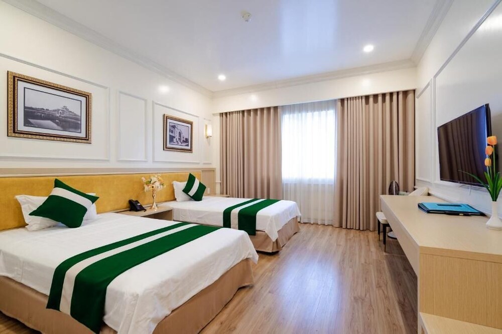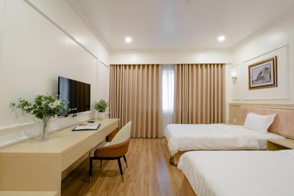When you stay at White Palace Lam Son Hotel in Thai Binh, you'll be 14 minutes by car from Thai Binh Keo Pagoda. This hostel is 10.4 mi (16.7 km) from Thien Truong Stadium and 10.9 mi (17.6 km) from Den Tran. Make yourself at home in one of the 32 air-conditioned rooms featuring flat-screen televisions. Complimentary wireless Internet access is available to keep you connected. Private bathrooms with shower/tub combinations feature rainfall showerheads and hair dryers. Conveniences include safes and desks, and housekeeping is provided daily. Distances are displayed to the nearest 0.1 mile and kilometer.