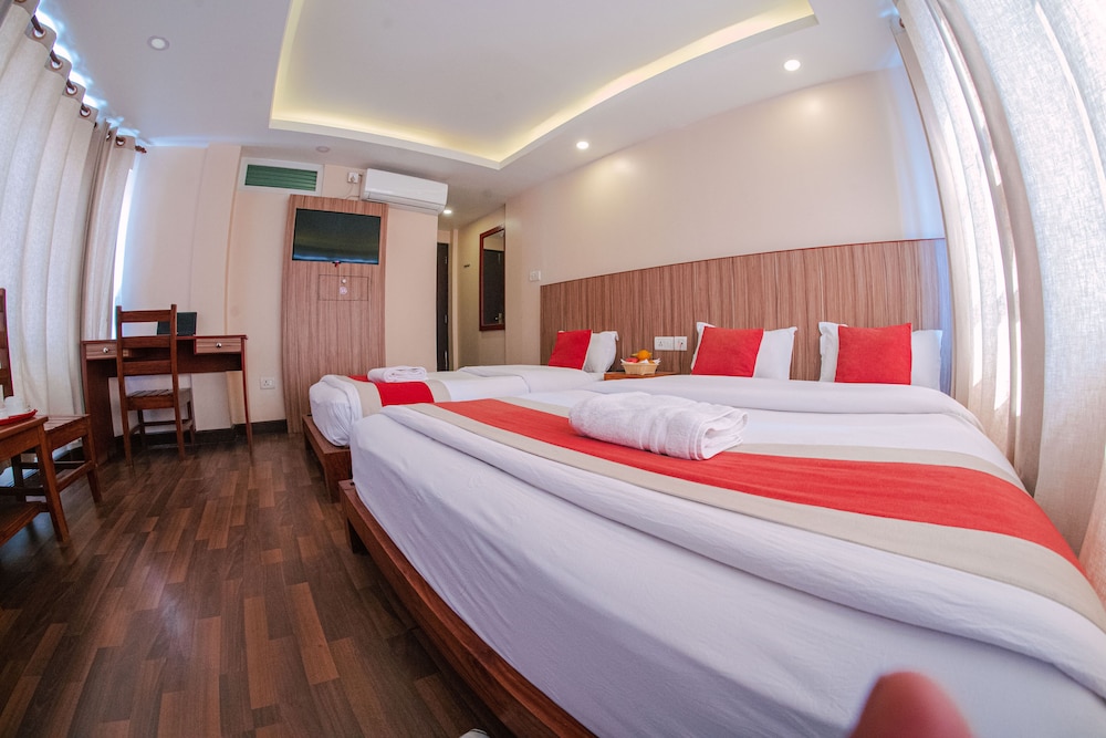 Located in Kathmandu (Thamel), Hotel Chhimeki is within a 10-minute drive of Pashupatinath Temple and Boudhanath. This hotel is 0.3 mi (0.6 km) from Kathesimbhu Stupa and 0.4 mi (0.6 km) from Nara Devi Temple. Make yourself at home in one of the 16 air-conditioned rooms featuring heated floors and LED televisions. Your bed comes with down comforters and Egyptian cotton sheets. Complimentary wireless internet access keeps you connected, and cable programming is available for your entertainment. Conveniences include desks and complimentary newspapers, as well as phones with free local calls. Distances are displayed to the nearest 0.1 mile and kilometer.
