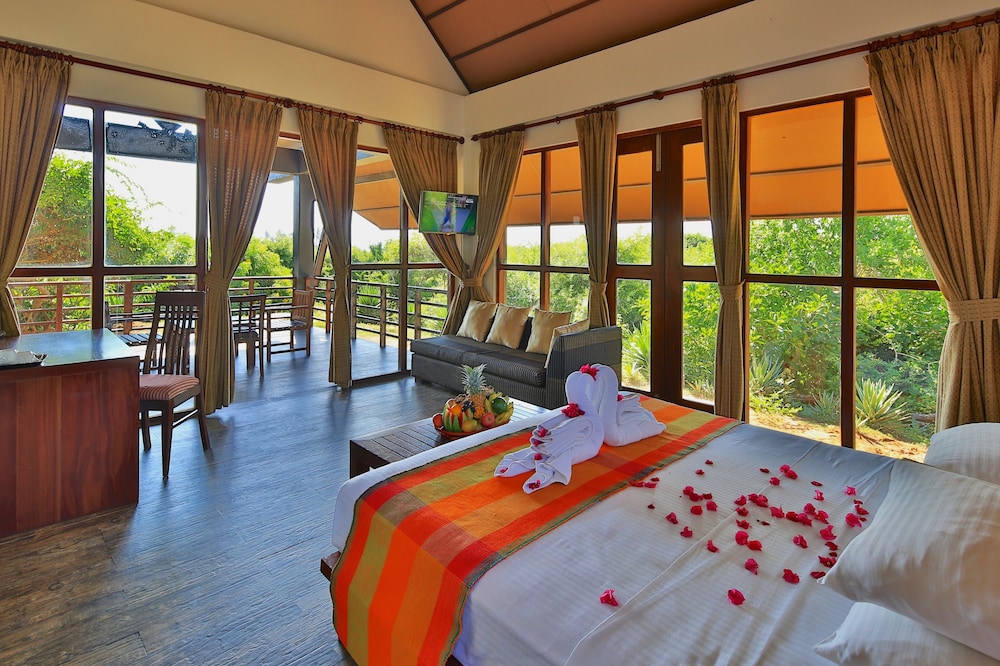 When you stay at Laya Safari in Palatupana, you'll be on the beach and 8 minutes by car from Yala National Park. This beach hotel is 4.5 mi (7.2 km) from Palatupana Beach and 7.3 mi (11.8 km) from Kirinda Beach. Make yourself at home in one of the 22 guestrooms featuring minibars and flat-screen televisions. Your bed comes with down comforters and premium bedding. Rooms have private balconies or patios. Complimentary wireless internet access keeps you connected, and satellite programming is available for your entertainment. Private bathrooms with separate bathtubs and showers feature deep soaking bathtubs and rainfall showerheads. Distances are displayed to the nearest 0.1 mile and kilometer.