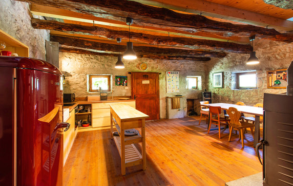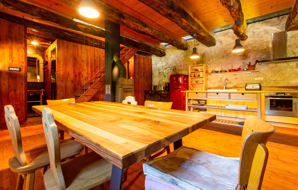In the Soa Valley there is a renovated house with typical architecture of the local settlements. On the ground floor there is a large kitchen and a dining room with access to a smaller garden, which is partially shaded by a pergola. Underneath there is a larger table and garden furniture as well as a practical barbecue for preparing meals. The garden also has a hot tub and a smaller relaxation area. The sauna is directly connected to the smaller bathroom with access to the garden. Upstairs there is a large master bedroom with a high ceiling and magnificent views of the surrounding hills. The house is ideal for families and anyone looking for an active holiday, as there is a wide range of attractive adrenaline and sports facilities nearby. There are children's playgrounds for all the villagers just 30 metres from the house. Nearby are the Tolmin gorges, which are the lowest and probably the most beautiful entry point to the Triglav National Park. Tolminka is a beautiful and lively river of intense blue colour, which flows into the emerald green beauty - the Soa - in Tolmin. The Soa River and the Tolminka River, both in the immediate vicinity, offer a wealth of activities such as rafting, kayaking, canoeing, river fishing and emerald water swimming.