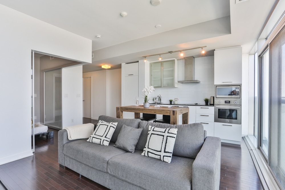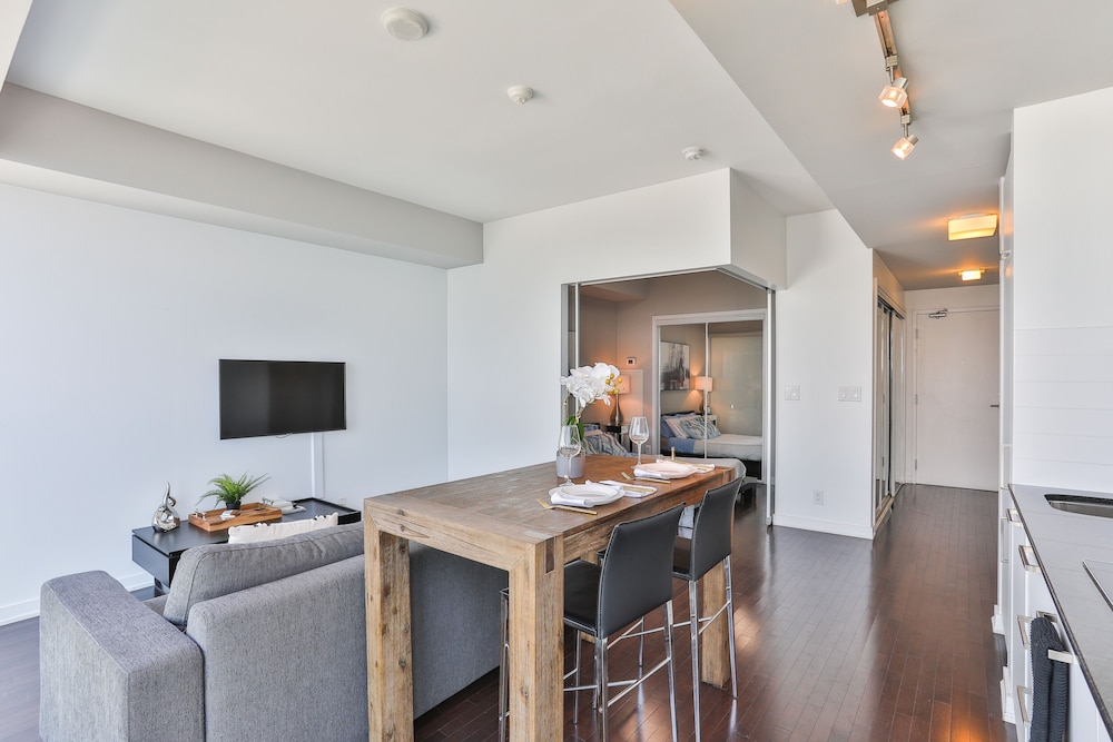With a stay at this apartment in Toronto (Downtown Toronto), you'll be a 4-minute walk from Scotiabank Arena and 7 minutes by foot from Ripley's Aquarium of Canada. This apartment is 0.4 mi (0.6 km) from Rogers Centre and 0.4 mi (0.6 km) from CN Tower. Make yourself comfortable in this air-conditioned apartment, featuring a kitchenette with a full-sized refrigerator/freezer and an oven. Complimentary wireless internet access is available to keep you connected. Conveniences include a microwave and an iron/ironing board. Distances are displayed to the nearest 0.1 mile and kilometer.