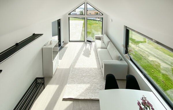 Your holiday home offers you comfort and a fantastic view of the sea. The newly built guest house impresses with large panoramic windows that let in plenty of light and provide a view of the water. Start the day with a cosy breakfast at the dining table and enjoy the elegant tranquillity that this house radiates. Use the practical kitchen to prepare your meals, which you can enjoy in the dining area or on the terrace. The open-plan design gives the house a special lightness.