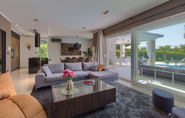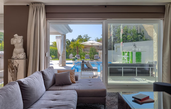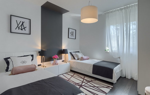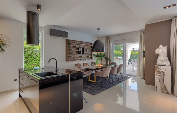 Enter the magnificent Villa Santo, the ideal combination of traditional Istrian style and modern furniture. Elegant and modern details are the main feature of this villa in combination with the stone facade. The special feature of Villa Santo is the private cinema on the second floor, where there are 6 massage chairs, a 75-inch TV and a popcorn machine for real movie enjoyment with family and friends. We are sure that you will spend many unforgettable moments and movie nights in this charming little cinema. The interior of Villa Santo is gorgeous and can accommodate a total of 8 people in a beautiful setting. The villa is divided into two floors where modern details prevail. On the first floor of the villa there is an open space where there is a living room, a kitchen with dining area, a bedroom and a bathroom. On the second floor there are 3 comfortable bedrooms, 2 bathrooms and the movie theater. Stunning bedrooms offer you peace and comfort under beautiful baldahines. From the living room you have access to the outdoor terrace with private pool and sun loungers as well as an outdoor dining area where you can barbecue in the outdoor kitchen next to the pool. Refresh yourself in the large pool on hot summer days and enjoy the summer in this magical climate. We are sure that Villa Santo will give you the vacation you deserve in this divine residence. At the very end of the western coast of the Istrian peninsula lies the magnificent town of Umag. Rich history, crystal clear sea and magical beaches adorn this landscape. The town walls and the famous bridge were built in the 10th century. Another famous landmark is the church of St. Rocha, which was built in 1507 after the plague epidemic. Villa Santo is only a 9-minute drive from the town of Umag. You can visit many famous sights such as the famous Savudrija lighthouse which is 20 minutes drive from the villa. Rocky and pebble beaches in Camp Finida are only 1.2 km away. Gastronomy lovers will be delighted by the restaurants and wineries in the area. If you want to prepare dinner for your loved ones, you will find all the necessary groceries in supermarkets and small stores within a radius of 2 km from the villa.