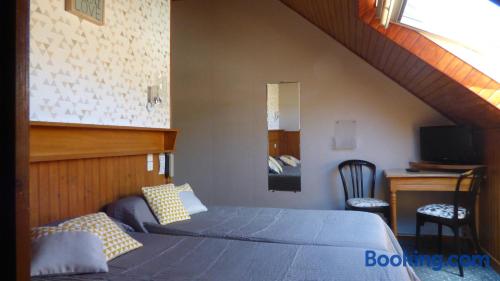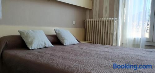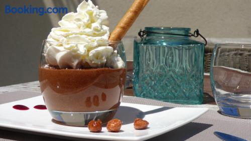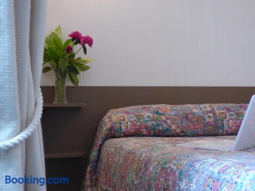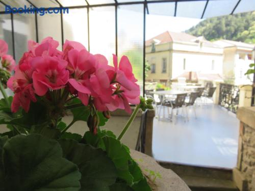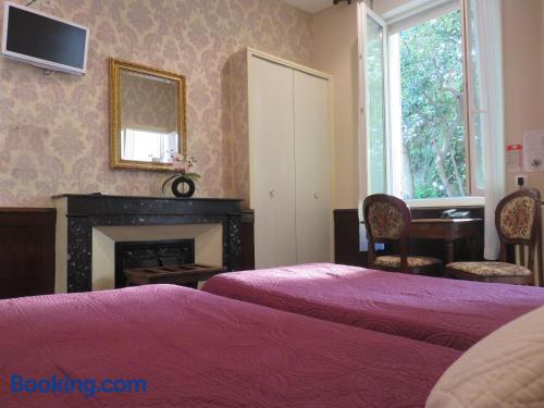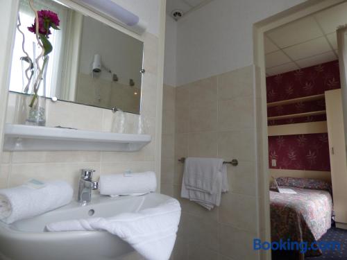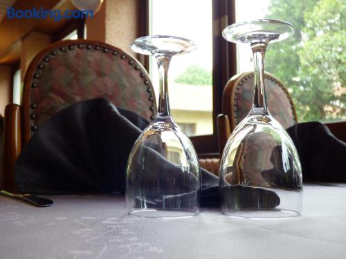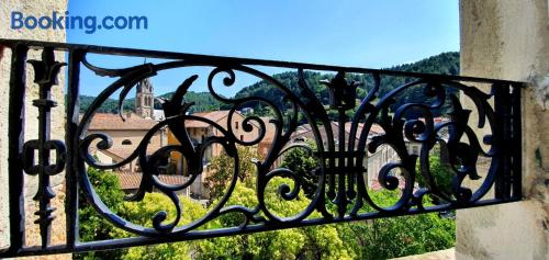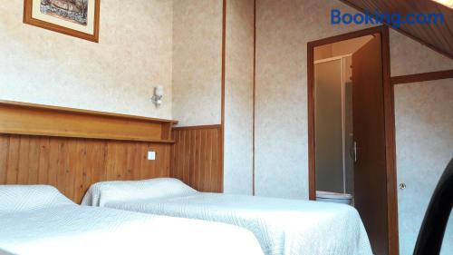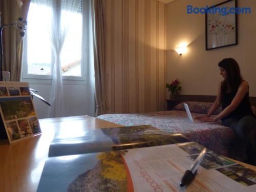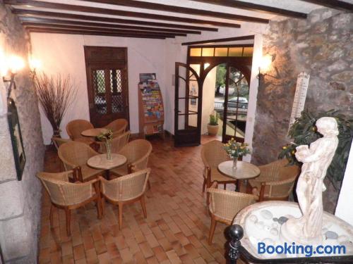 Located in Vals les Bains, 4 km from Le Chateau d'Aubenas, Hôtel Saint Jean offers a regional restaurant which features a veranda, a bar and a large terrace. The rooms have a LCD, satellite TV.The rooms at Hôtel Saint Jean have a view of the mountains and a carpeted floor. The bathroom includes a hairdryer and free toiletries. Free Wi-Fi is provided.The continental breakfast can be served on the terrace which offers a panoramic view of the mountains. It includes French pastries, fruit juices and fruits.It is 300 metres from local swimming pool and 20 km from Largentiere. The city of Montelimar is 46 km away and there is a free, private car park on site.