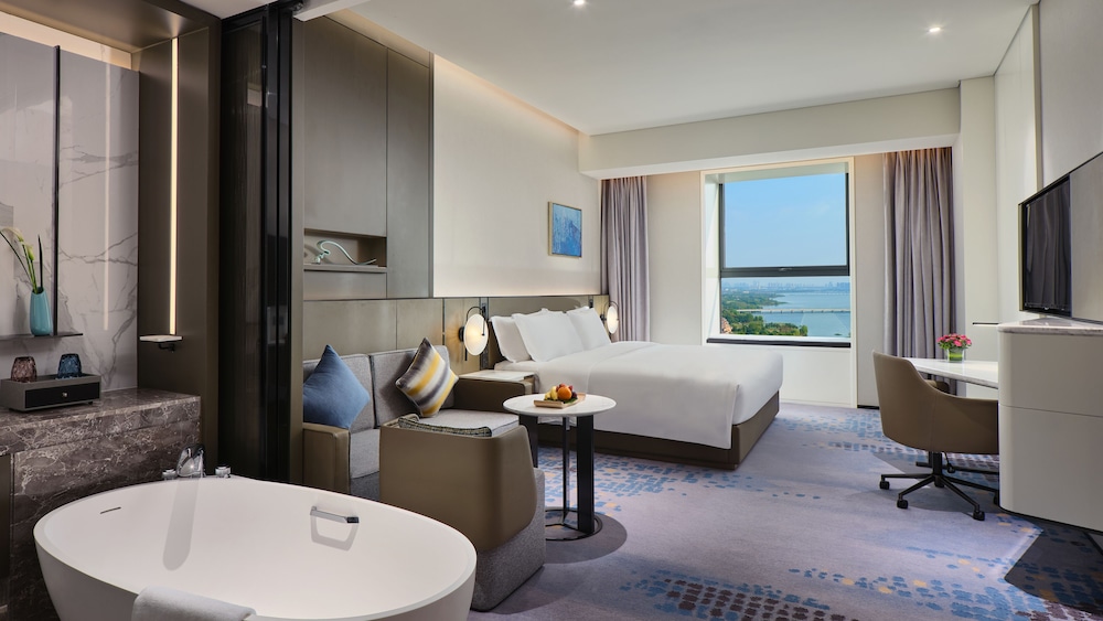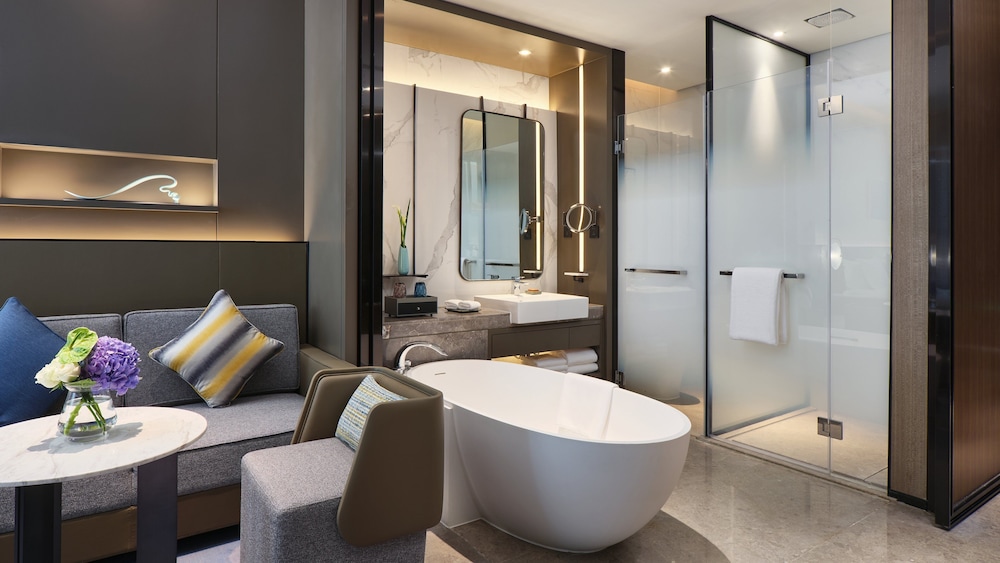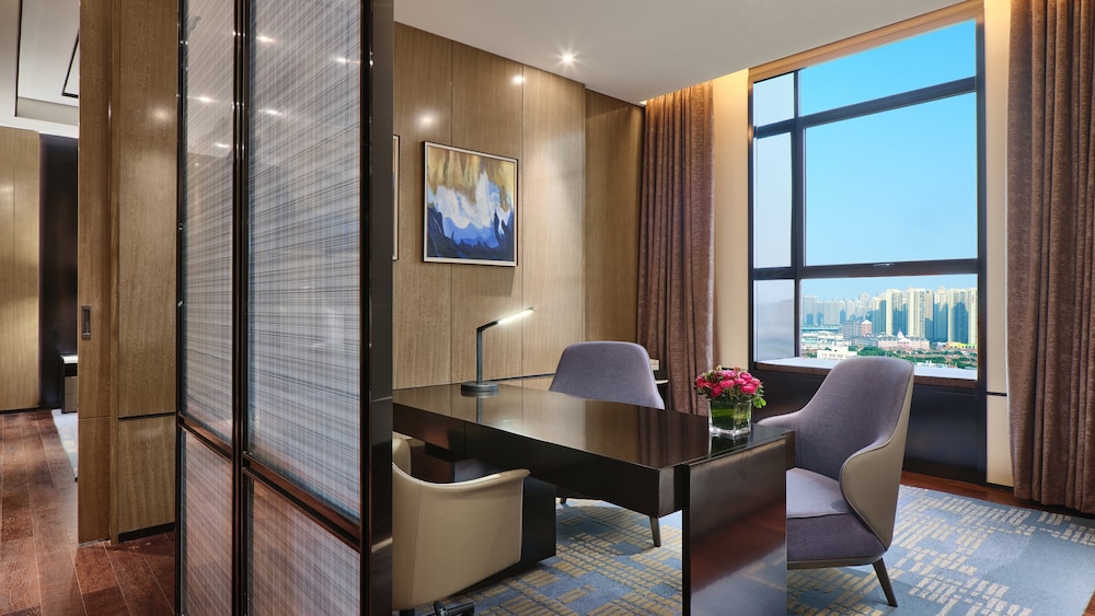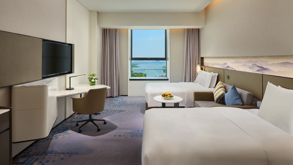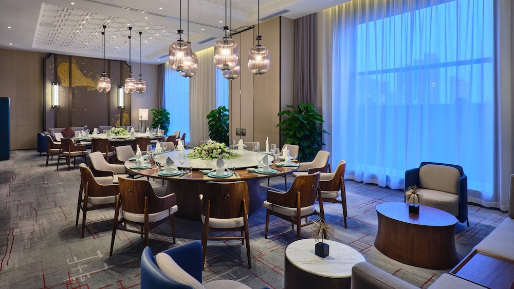 A stay at Crowne Plaza Wuhan Development Zone by IHG places you in the heart of Wuhan, a 4-minute drive from Wuhan Sports Center Stadium and 7 minutes from Yangtze. This hotel is 7 mi (11.3 km) from Wuhan International Expo Center and 8.3 mi (13.3 km) from Guiyuan Temple. Make yourself at home in one of the 263 air-conditioned rooms featuring DVD players and flat-screen televisions. Cable television is provided for your entertainment. Bathrooms with bathtubs or showers are provided. Conveniences include desks and complimentary bottled water, and housekeeping is provided daily. Distances are displayed to the nearest 0.1 mile and kilometer.