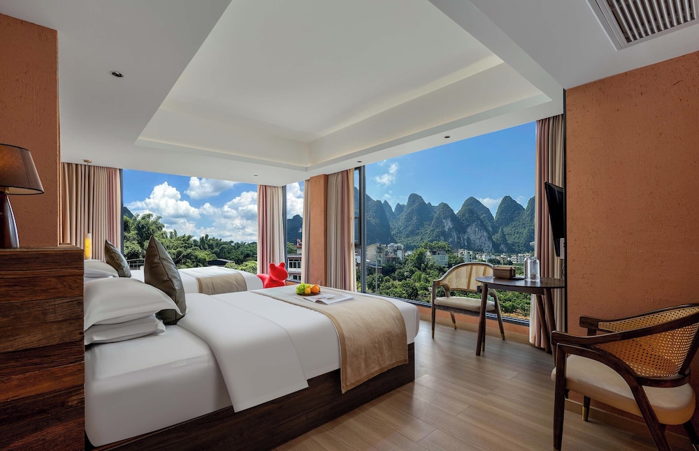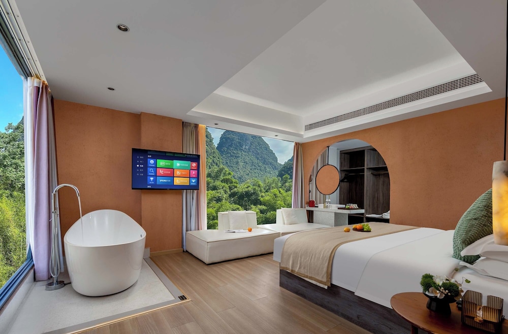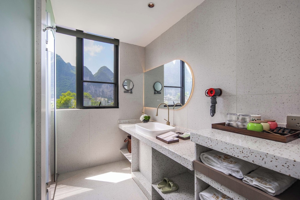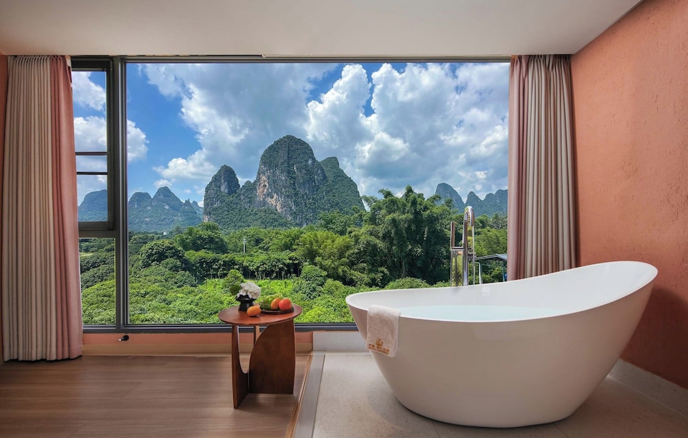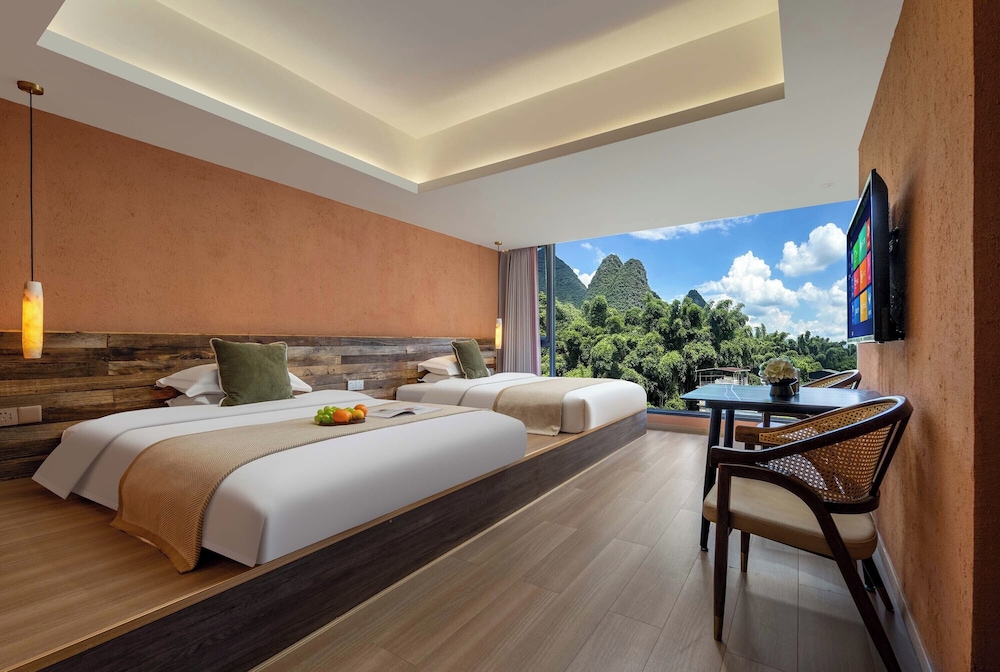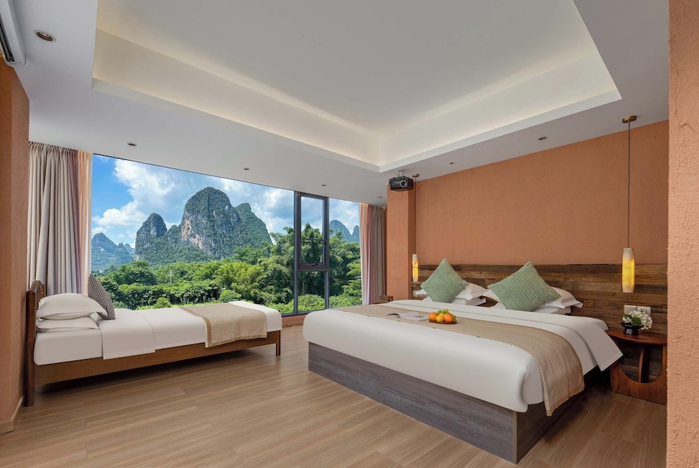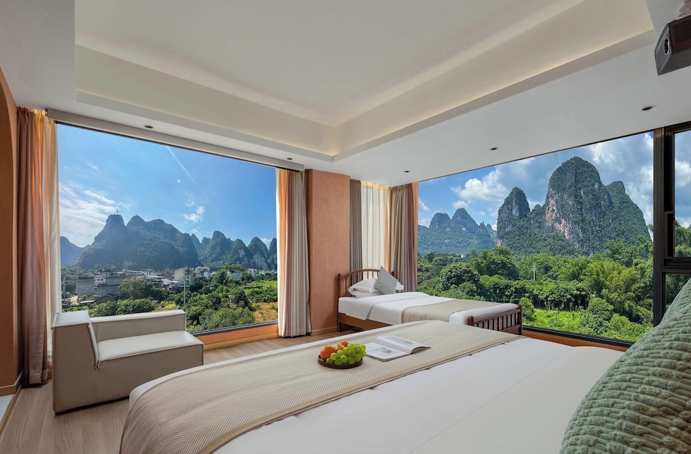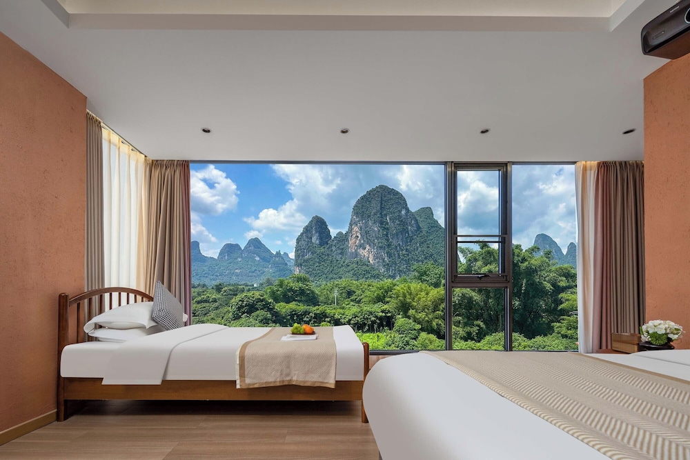 With a stay at Riverside Bamboo Frest Hotel in Guilin, you'll be on a river, just steps from South China Karst and a 1-minute drive from Li River. This hotel is 11.8 mi (19 km) from Fuli Ancient Town and 15 mi (24.1 km) from Green Lotus Peak. Make yourself at home in one of the 17 air-conditioned guestrooms. Complimentary wireless internet access keeps you connected, and cable programming is available for your entertainment. Private bathrooms with bathtubs or showers feature complimentary toiletries and hair dryers. Conveniences include blackout drapes/curtains, and housekeeping is provided on request. Distances are displayed to the nearest 0.1 mile and kilometer.