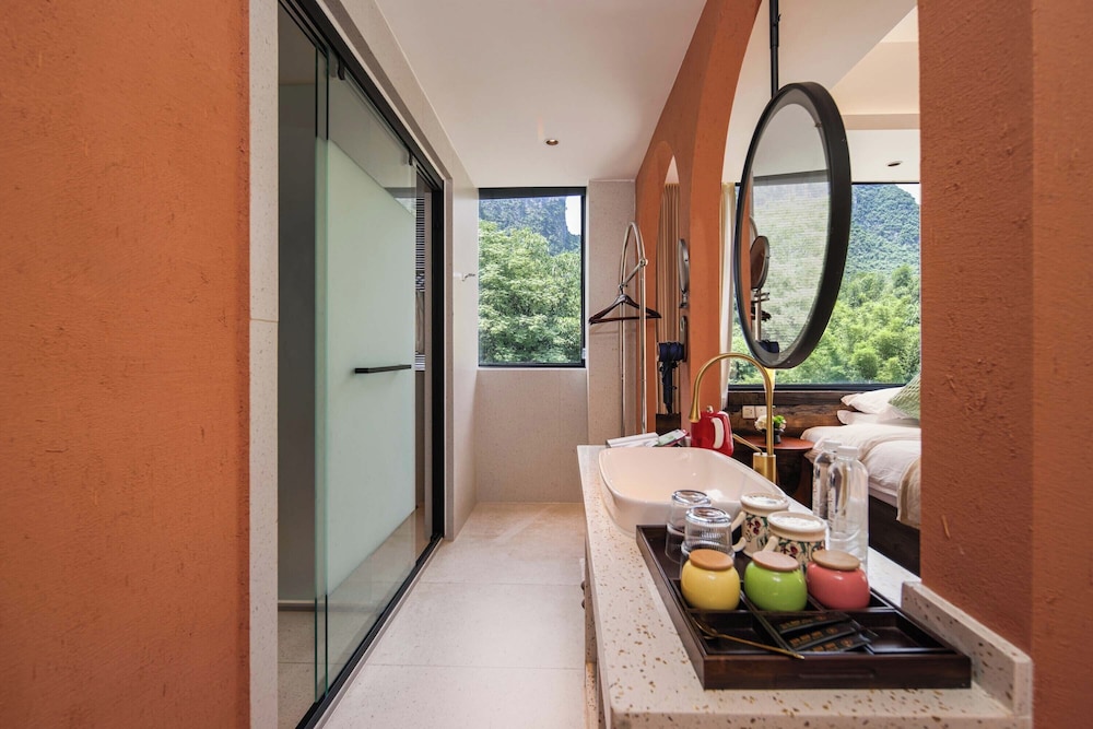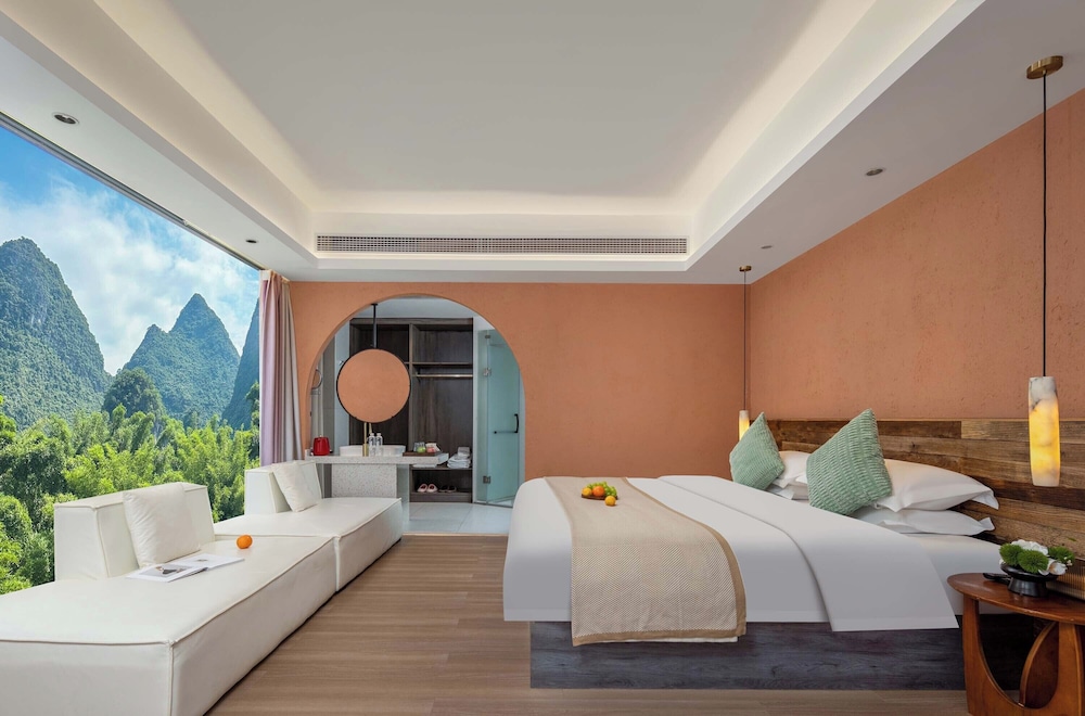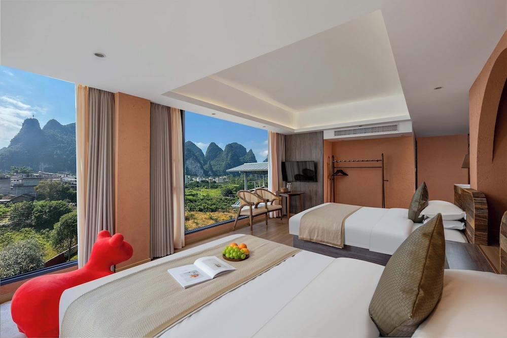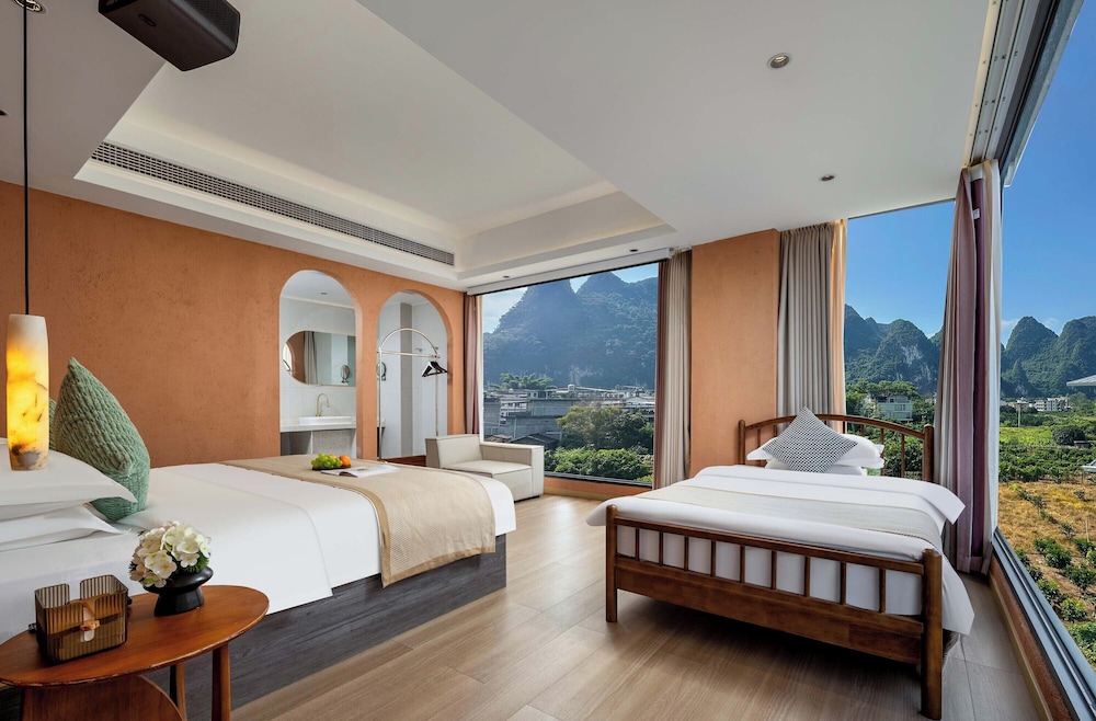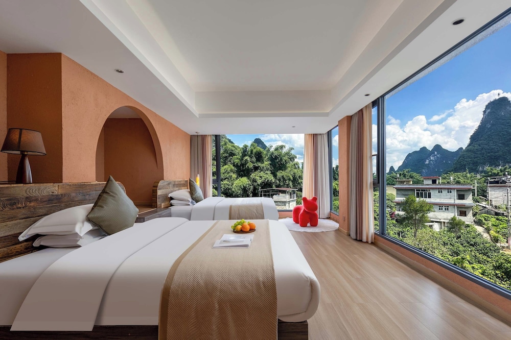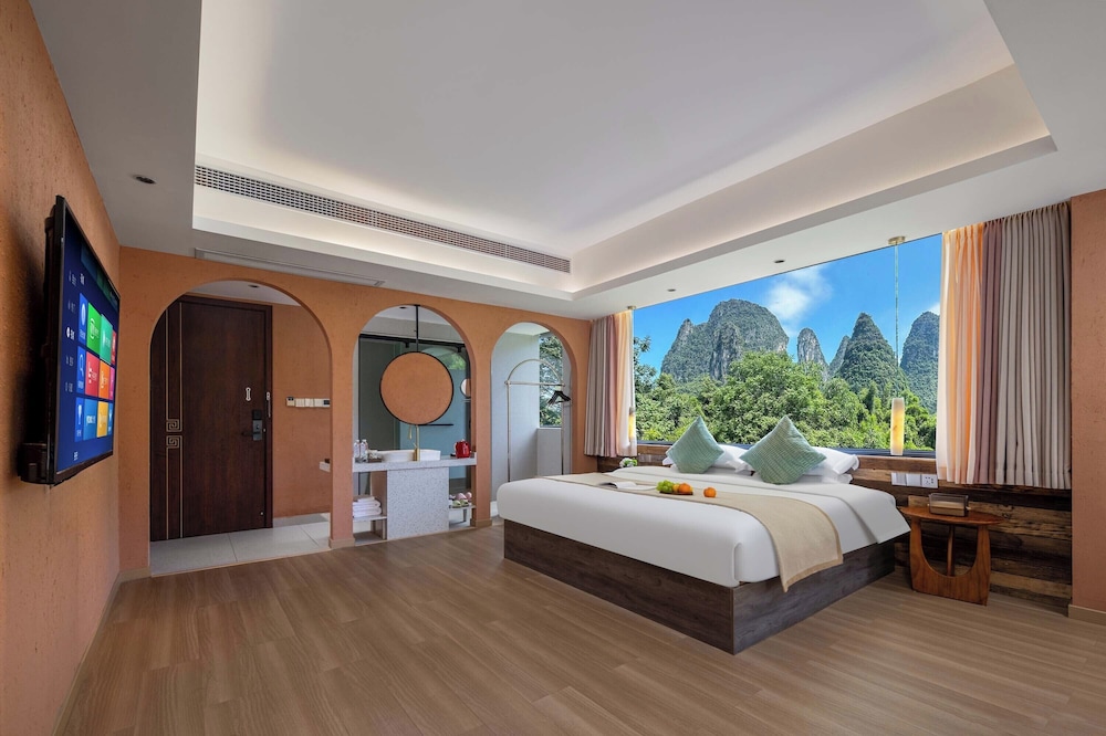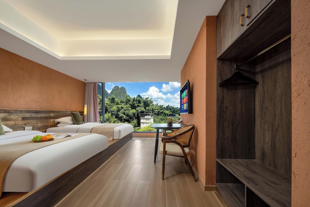 With a stay at Riverside Bamboo Frest Hotel in Guilin, you'll be on a river, just steps from South China Karst and a 1-minute drive from Li River. This hotel is 11.8 mi (19 km) from Fuli Ancient Town and 15 mi (24.1 km) from Green Lotus Peak. Make yourself at home in one of the 17 air-conditioned guestrooms. Complimentary wireless internet access keeps you connected, and cable programming is available for your entertainment. Private bathrooms with bathtubs or showers feature complimentary toiletries and hair dryers. Conveniences include blackout drapes/curtains, and housekeeping is provided on request. Distances are displayed to the nearest 0.1 mile and kilometer.