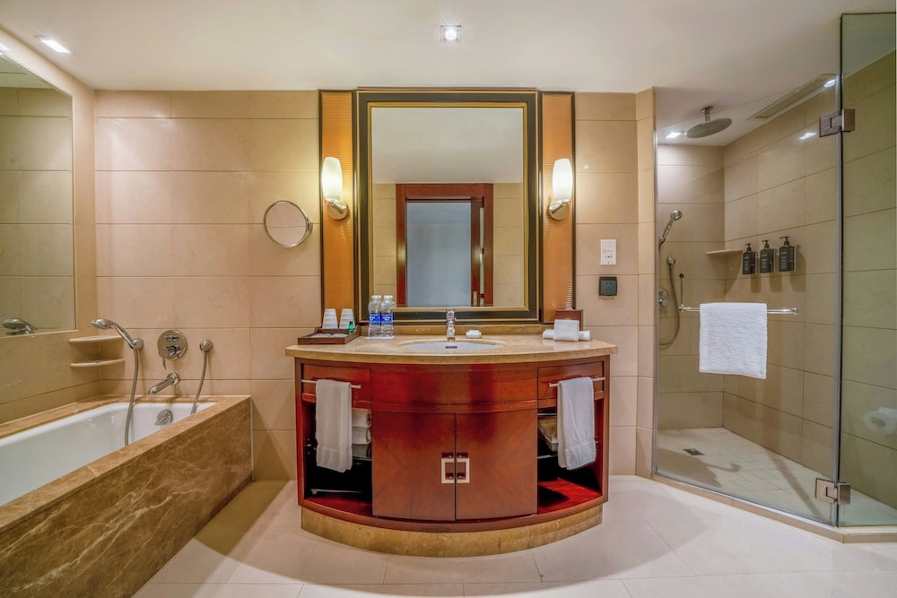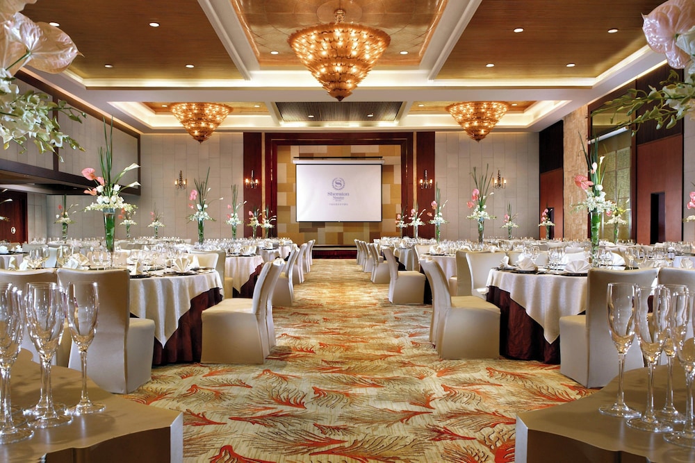 A stay at Sheraton Ningbo Hotel places you in the heart of Ningbo, within a 15-minute walk of Qita Temple and Tianyi Square. This luxury hotel is 0.6 mi (1 km) from Guanzong Temple and 1.1 mi (1.7 km) from Chenghuang Temple. Make yourself at home in one of the 378 guestrooms featuring minibars and LCD televisions. Complimentary wired and wireless internet access keeps you connected, and satellite programming provides entertainment. Private bathrooms with separate bathtubs and showers feature deep soaking bathtubs and rainfall showerheads. Conveniences include safes and desks, as well as phones with free local calls. Distances are displayed to the nearest 0.1 mile and kilometer.