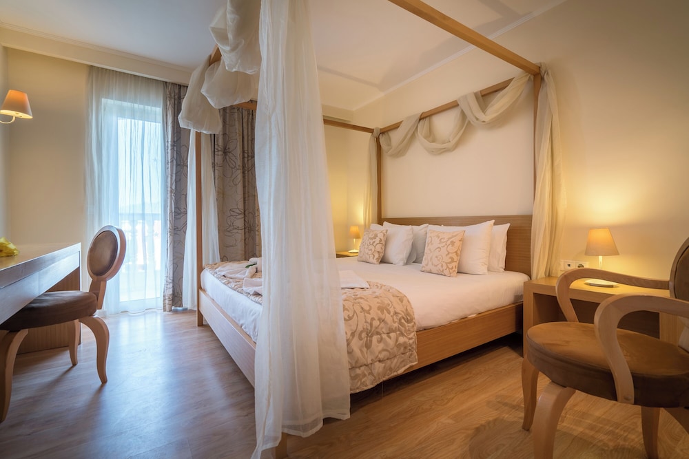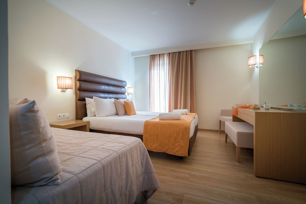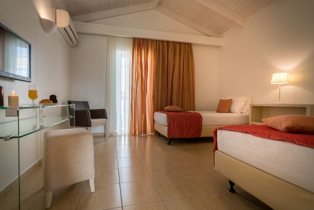When you stay at Galaxy Beach Resort, BW Premier Collection in Zakynthos, you'll be on the beach, just steps from Laganas Beach and 11 minutes by foot from Kalamaki Beach. This all-inclusive hotel is 8.2 mi (13.2 km) from Tsilivi Beach and 11.4 mi (18.4 km) from Alykanas Beach. Make yourself at home in one of the 140 air-conditioned rooms featuring minibars. Your room comes with a pillowtop bed. Rooms have private furnished balconies or patios. Complimentary wireless internet access keeps you connected, and satellite programming is available for your entertainment. Private bathrooms have complimentary toiletries and hair dryers. Distances are displayed to the nearest 0.1 mile and kilometer.